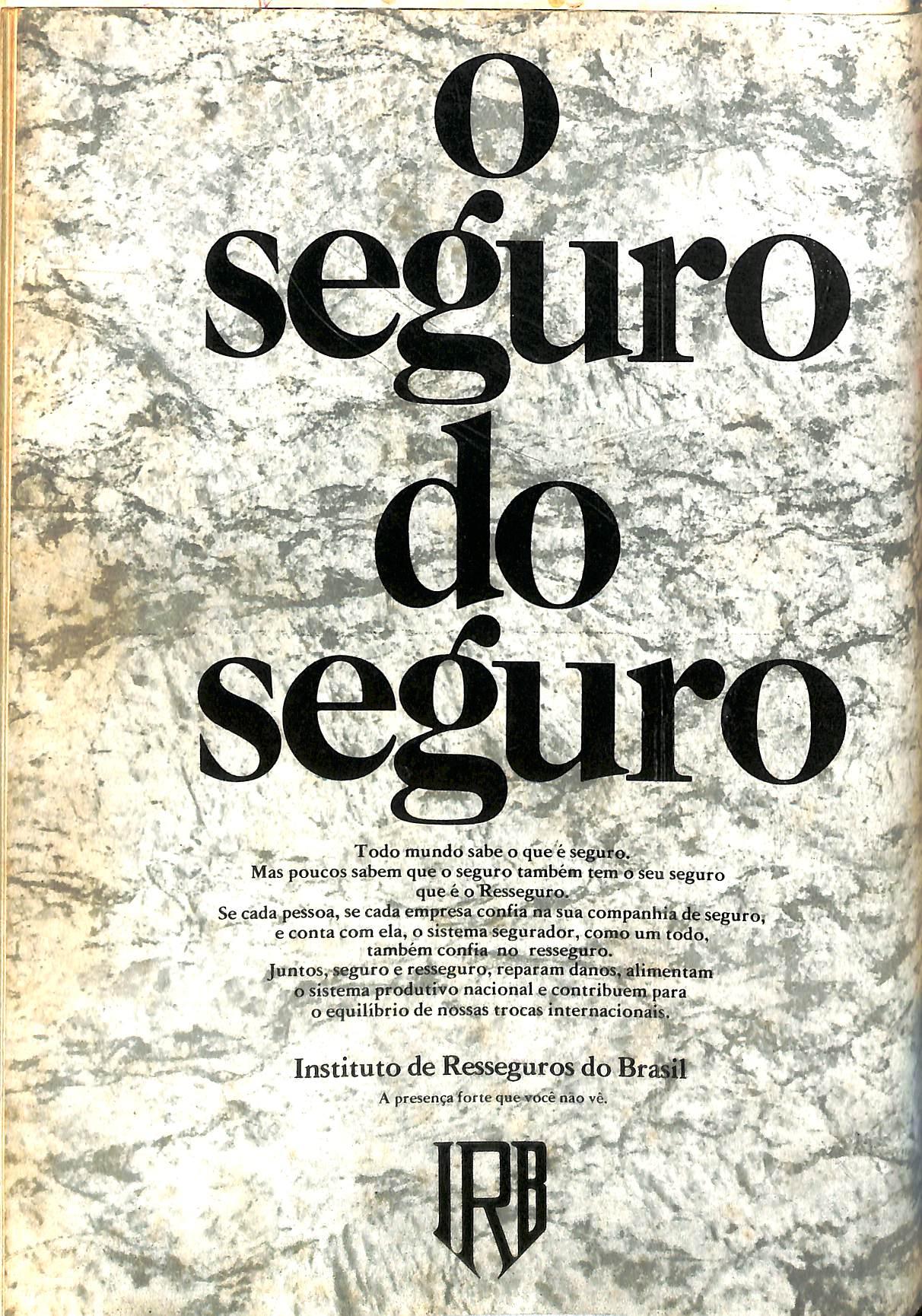 0 IRB, juniando as vontades dos empresarios e do Goveitio, e sem a preocupacao de copiar modelos estrangeiros, foi capaz de implaniar, em curto prazo, criterios economicofinanceiros, lecnicos e organizacionais compativeis com a realidade brasileira, e dai induzir a empresa de capital nacional a assumir a lideranca-domercadointerno.Consolidada essa rase, com a fixacao de nova personalidade pelo mercado segurador brasileiro, este veio a peider o respaldo da legislacao nacionalisia que ate entao o impulsionara. Alem disso, o setor depois padeceria dos efeitos da inflacao, o mais importante adversario da expansao do segufo