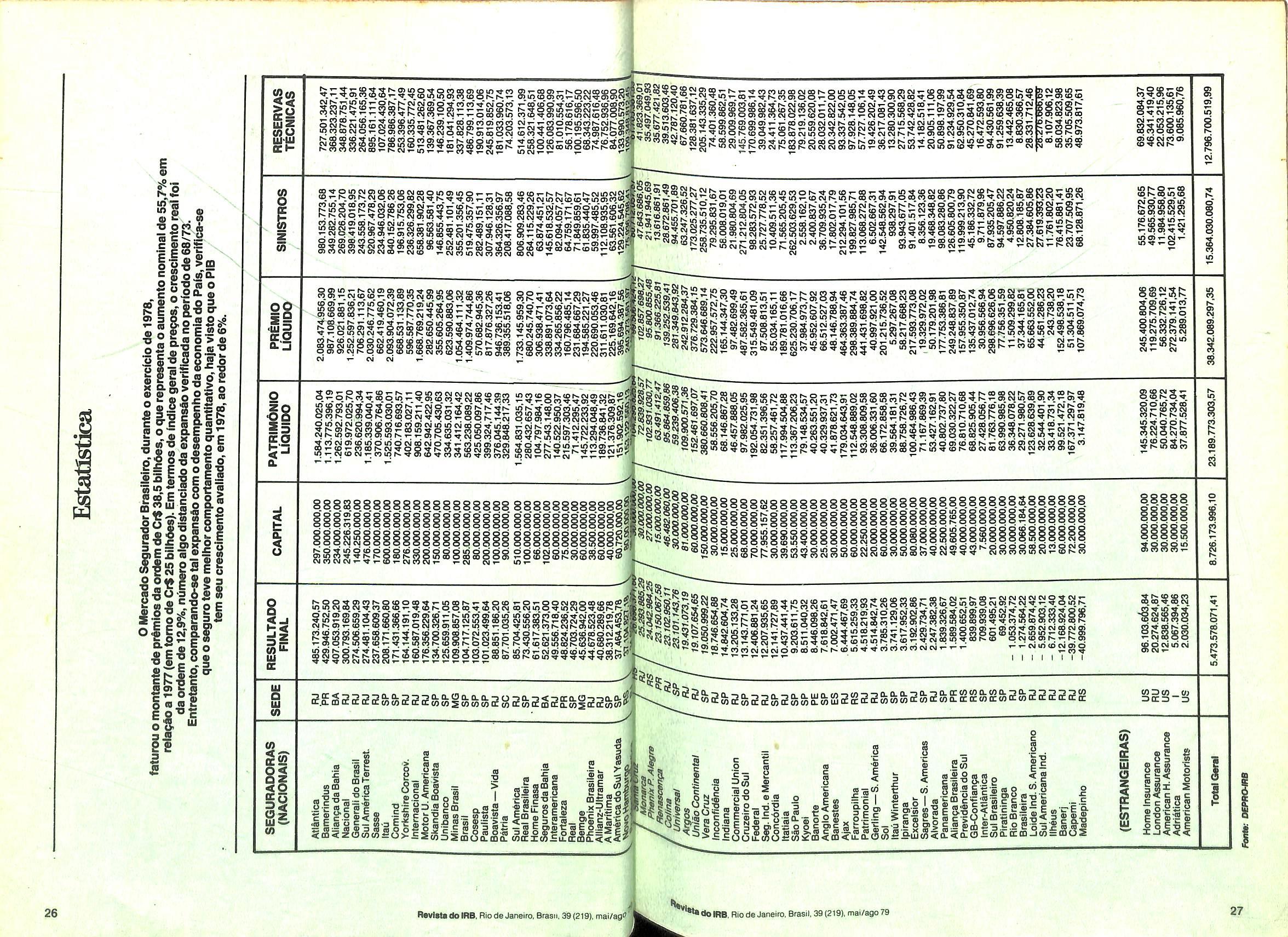 mnsta do ministerio da fazenda instiMo de wssegumsdo bmsil Ano 39 n.o 219 Mai/Ago 79 ISSN:0019^6 /I. '-' C Po; Consciencia do Risco ; 1 ie og-aQDir isTi,