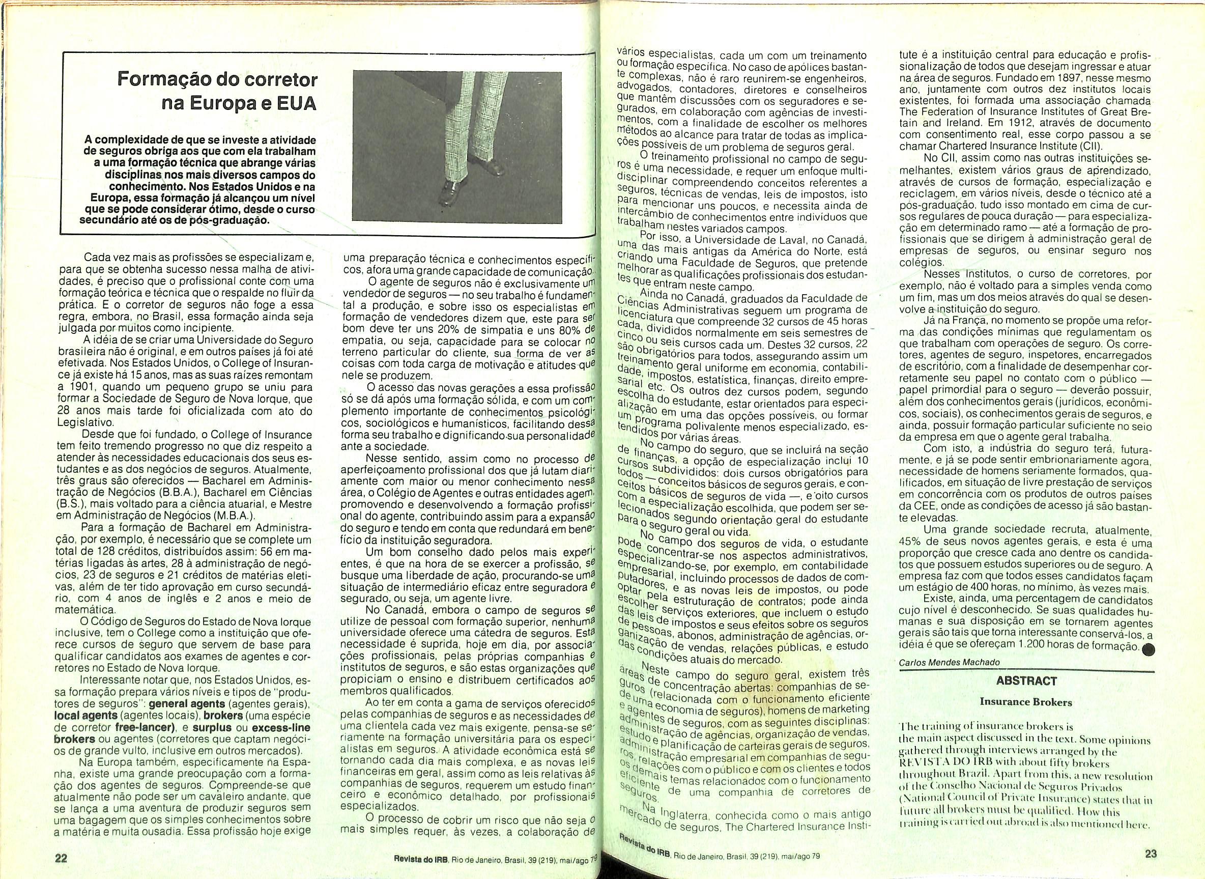 Casuaimente tive a oportunidade de ler a V. Revista quadrimestral. que aborda a materia de Seguros e Resseguros, a quai me despertou espeeial interesse.