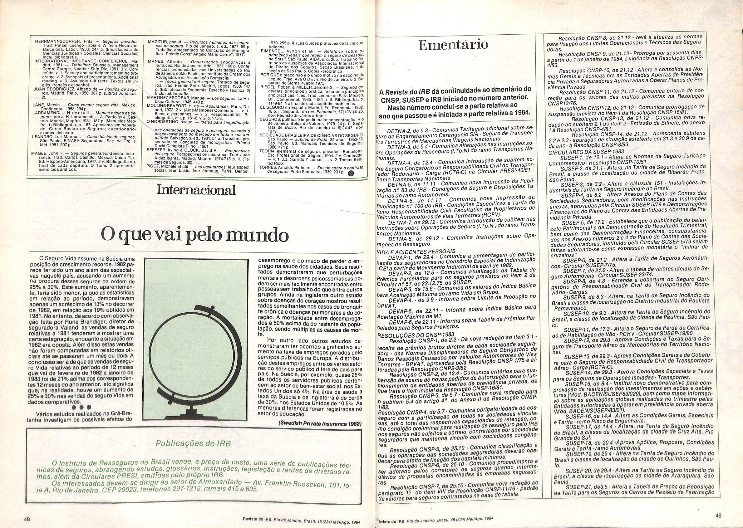 SUSEP-13. de 16.4 — Altera a CircularSUSEP 5/84. EMENTARIODOIRB-1984.