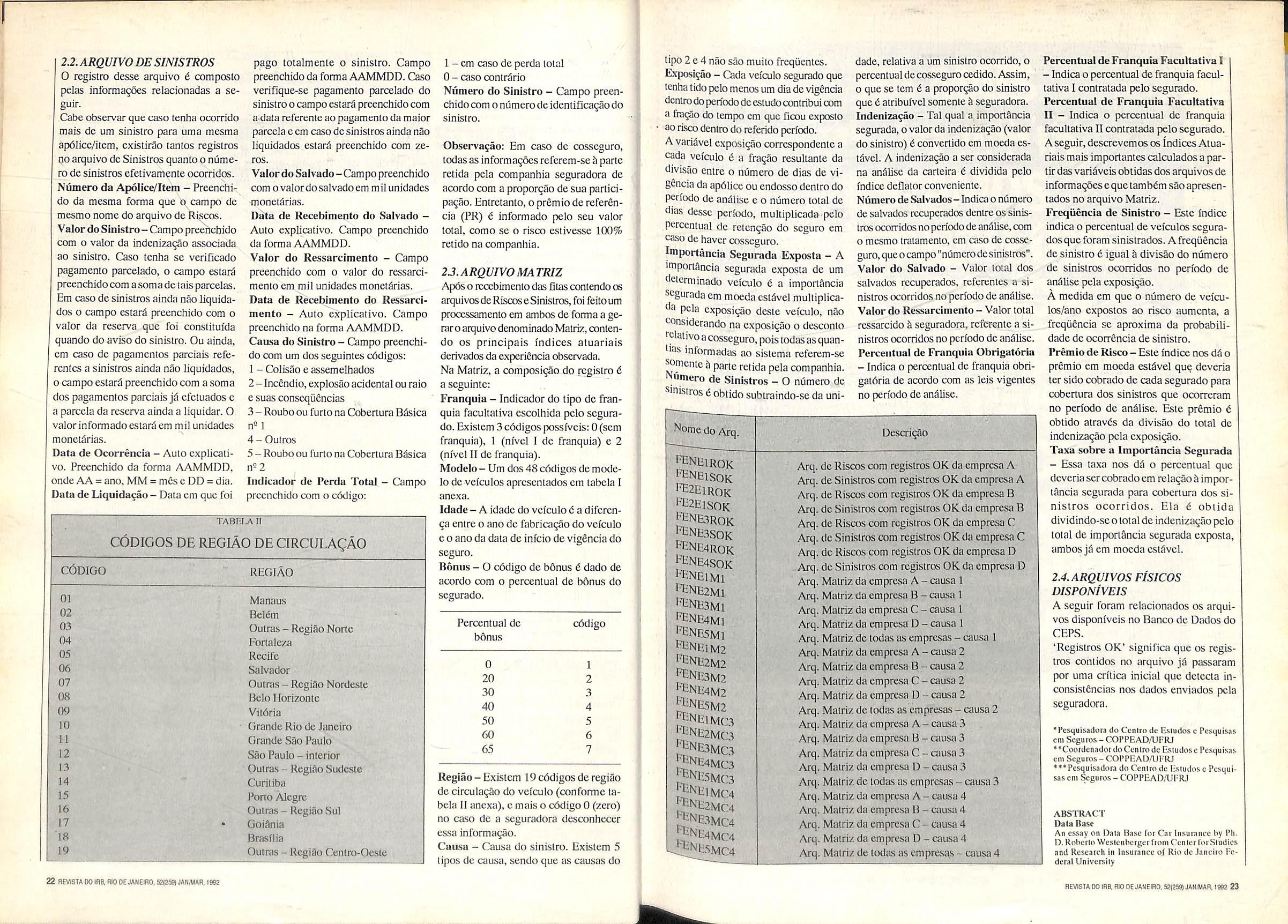Trabalho de M.Cristina P. de Souza, Roberto Westenberger e Thereza C.B. Moreno,sobre Banco de Dados de Seguro Automoveis