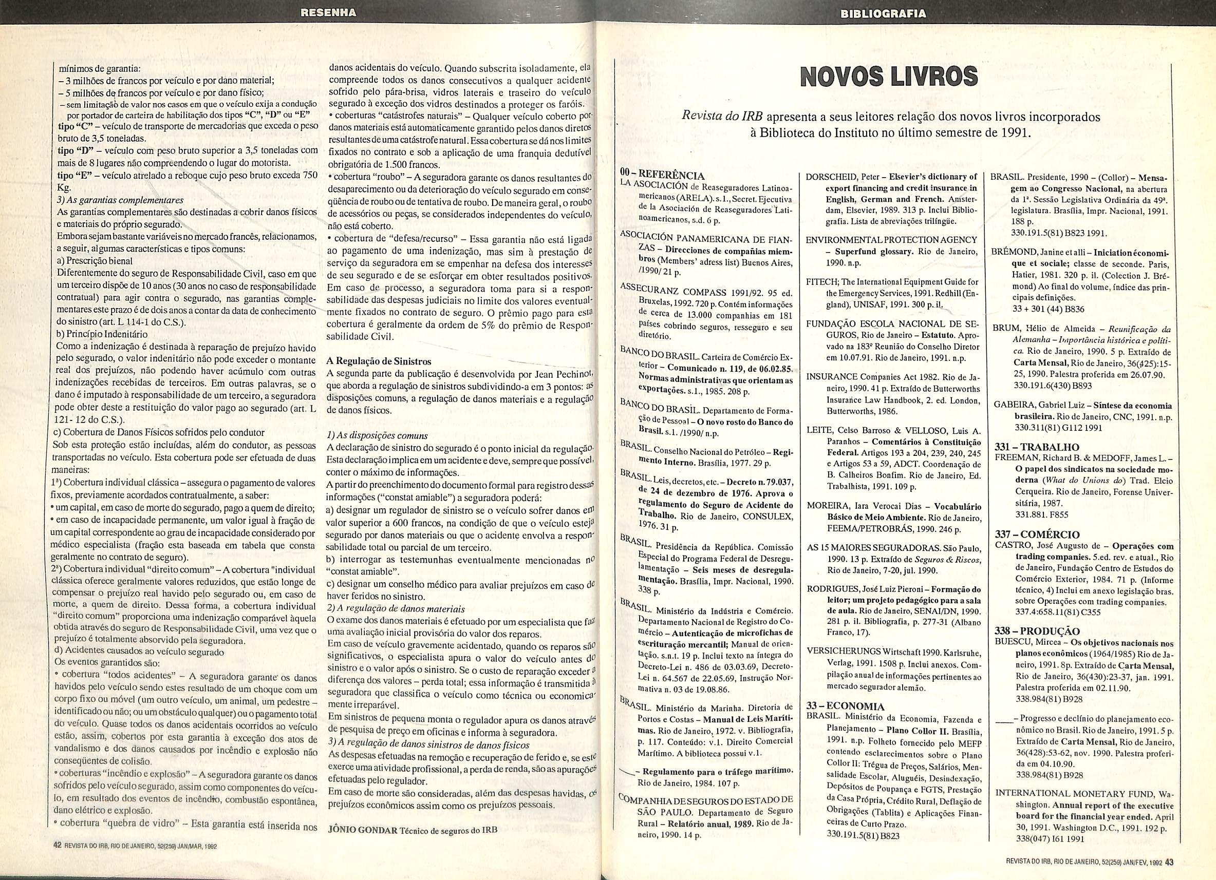 works received on IRB's Library recently. FtEVISTADOIRe,niOOEJANEIRO,S2(S9)JAN/FEV, IBS2 46