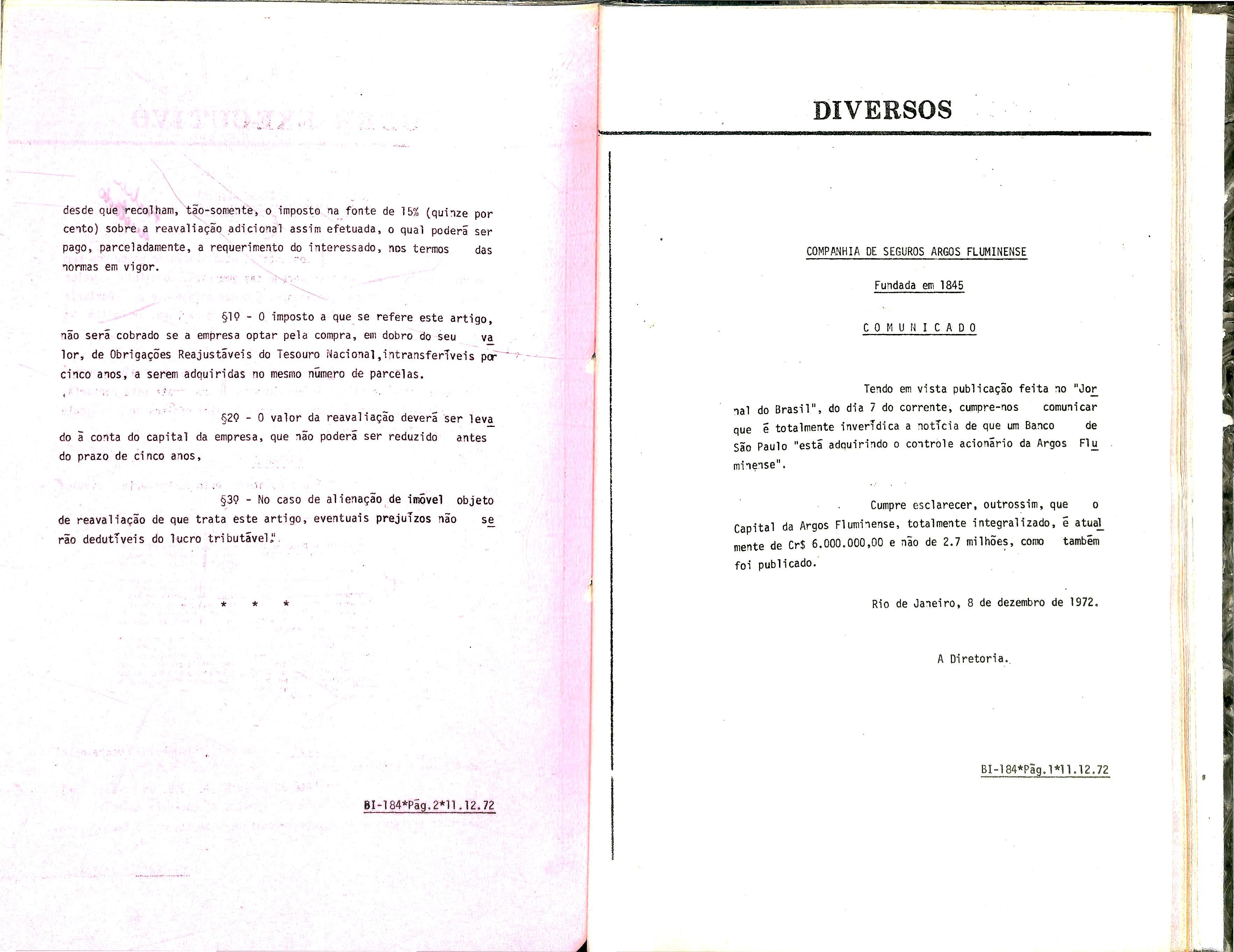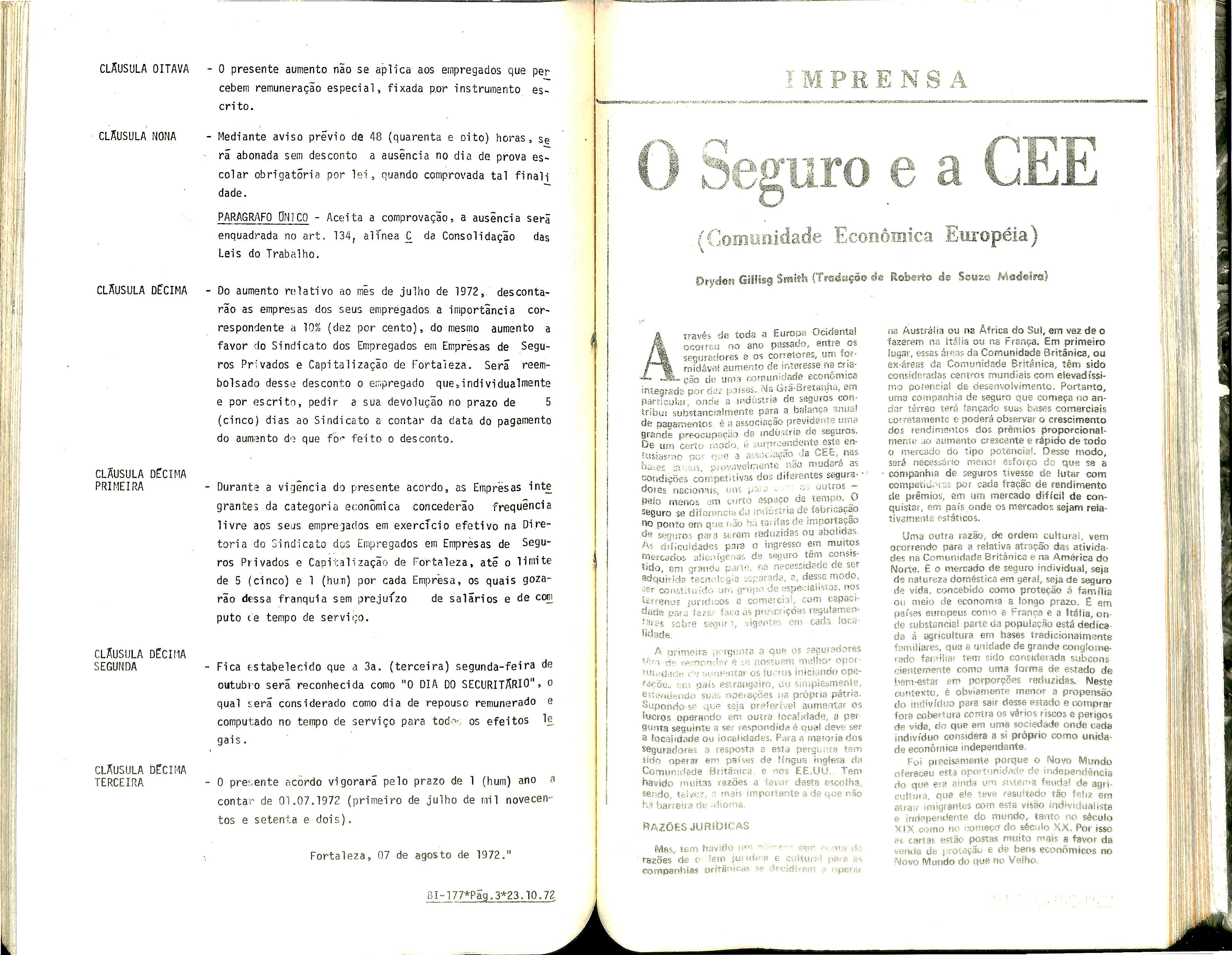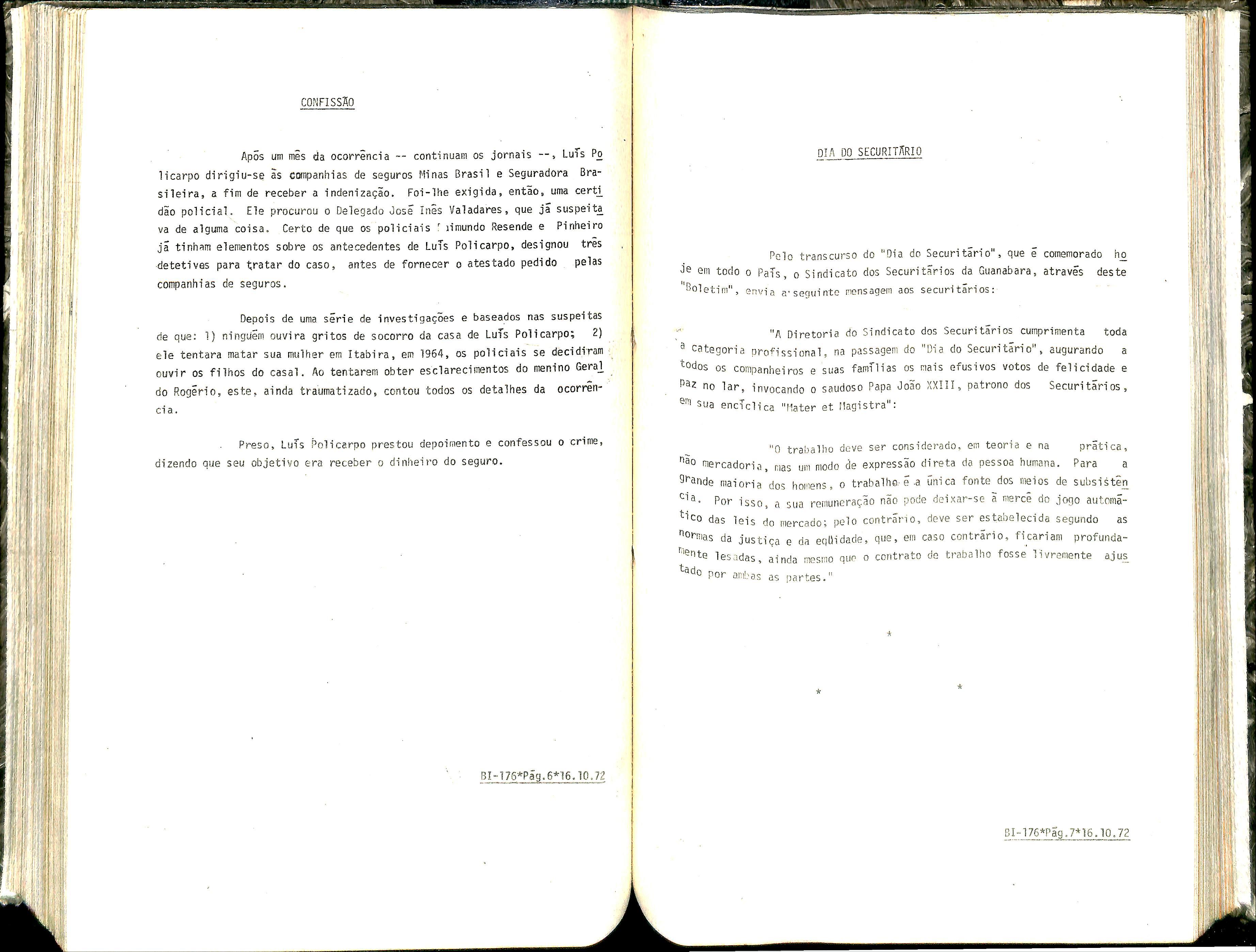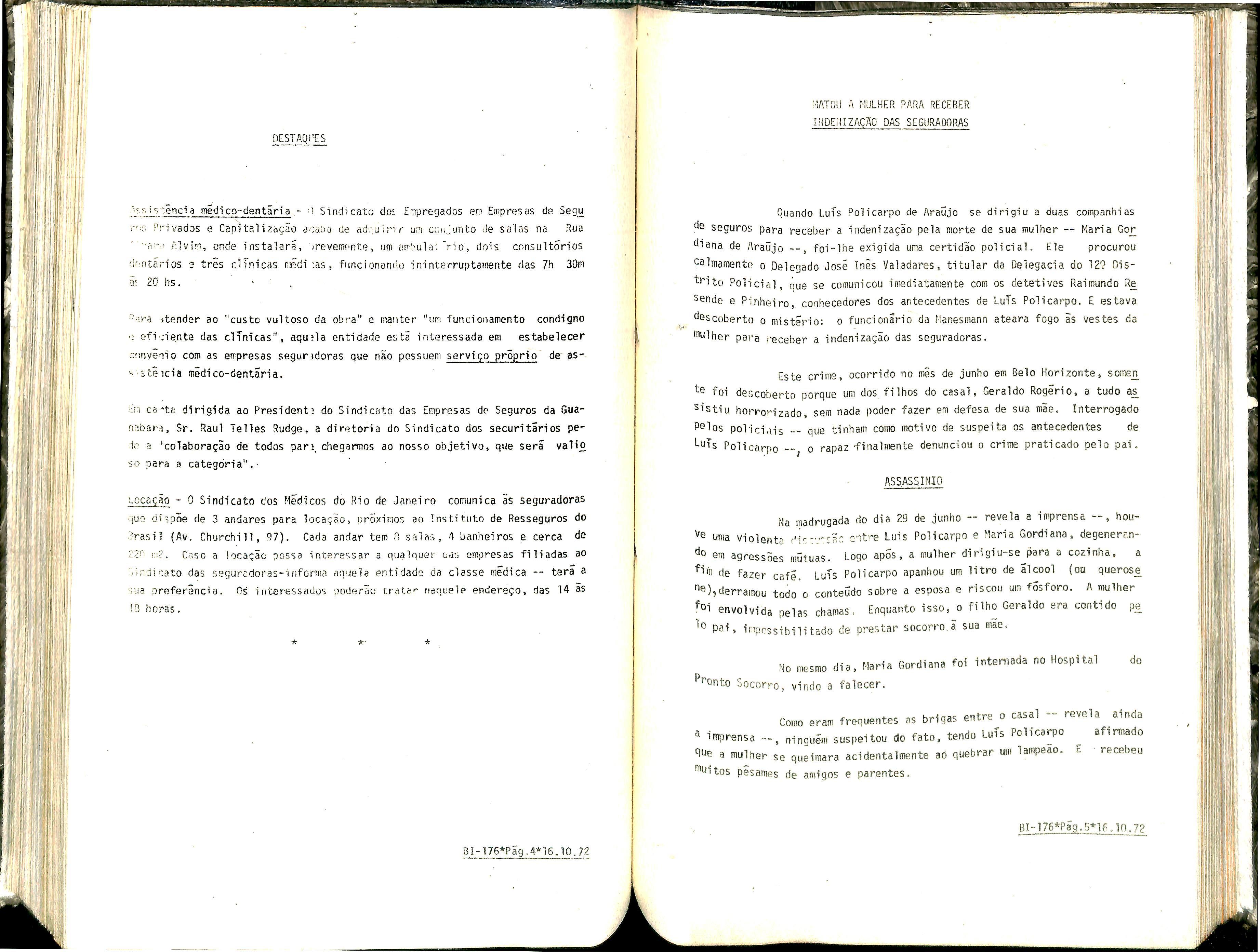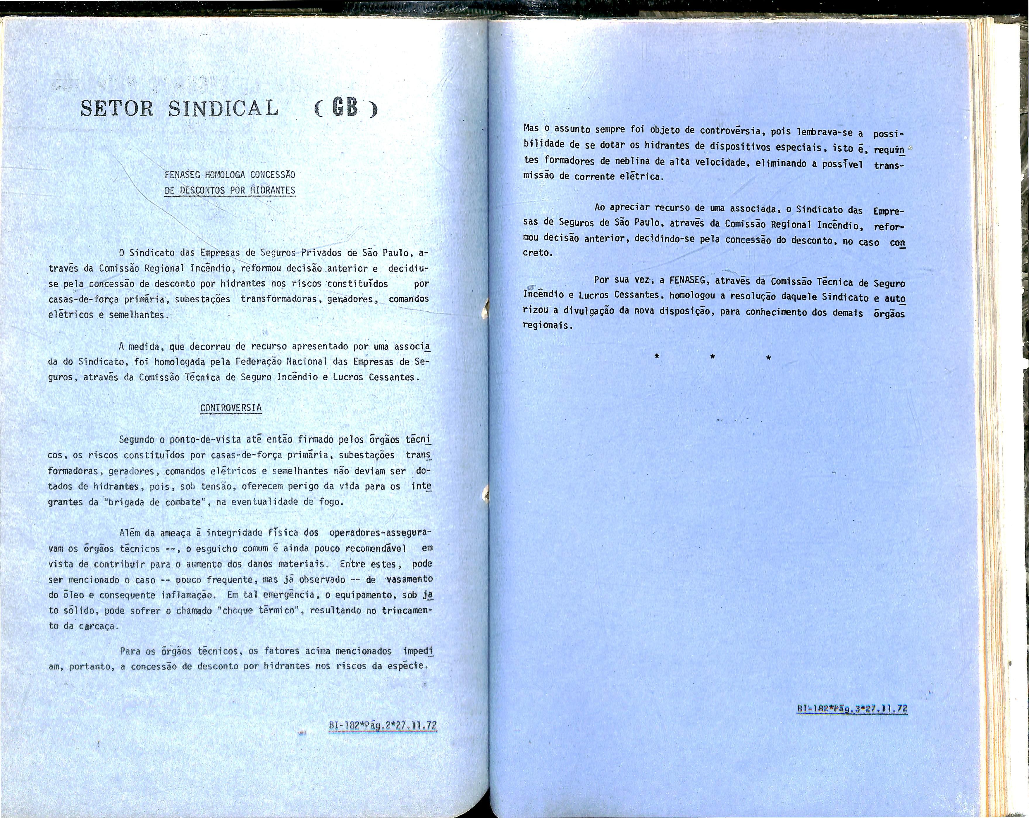 O "Diãrio Oficial" da Uniâo de20 de junho (Seção I, Parte_II, pâgs. 2 360/69) publicou a Circular n9 -l9-{9-2-72), da Superintendencia de Seguros Privados, que aprova Tarifa, Condições Gerais e ·Especiais de AQÕli_ cedo Ramo Roubo. No mesmo ôrgão de 23 de junho (Seção I, Parte II, pags. 2 413/14), foi publicada a Circular nQ 33, da SUSEP, que altera a Tarifa de Se guros Automóveis - Art. 11, acessórios e equipamentos e Clãusula nQ 4, cobertu-=ra adicional para acessõrios e equipamentos.