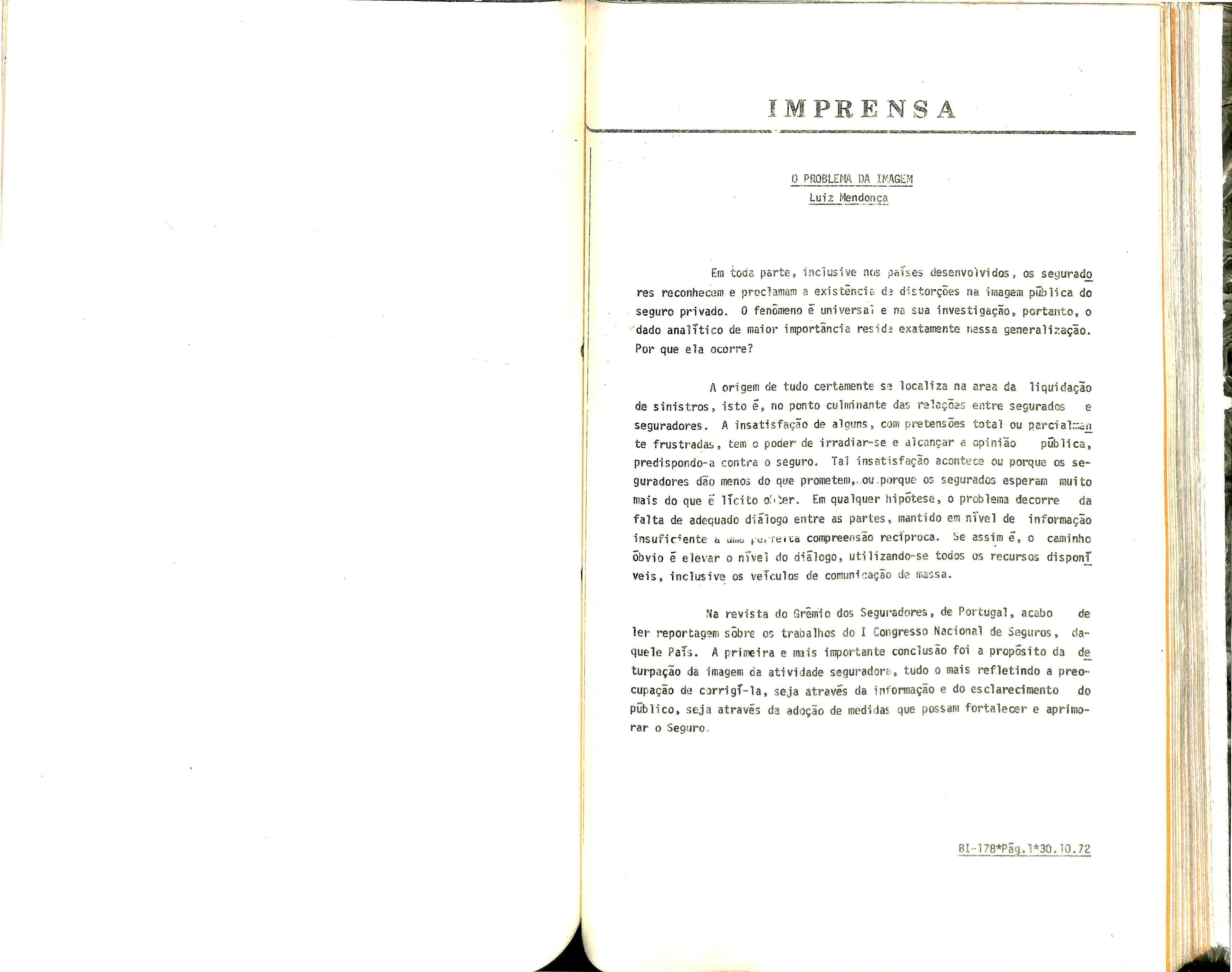 , proaa um só tempo se co n verteriam no maior agente de auto-propaganda da Instituição Justo que o Segu ro custeasse esse aspecto de autO'f)ropaganda,envol ve ndo red uçõ es possíveis de taxas atuais de prêmio que, na realidade, vi ria a representar també m um a consequência da apli c ação do nomeado "Princf pio do Mutu a lismo".