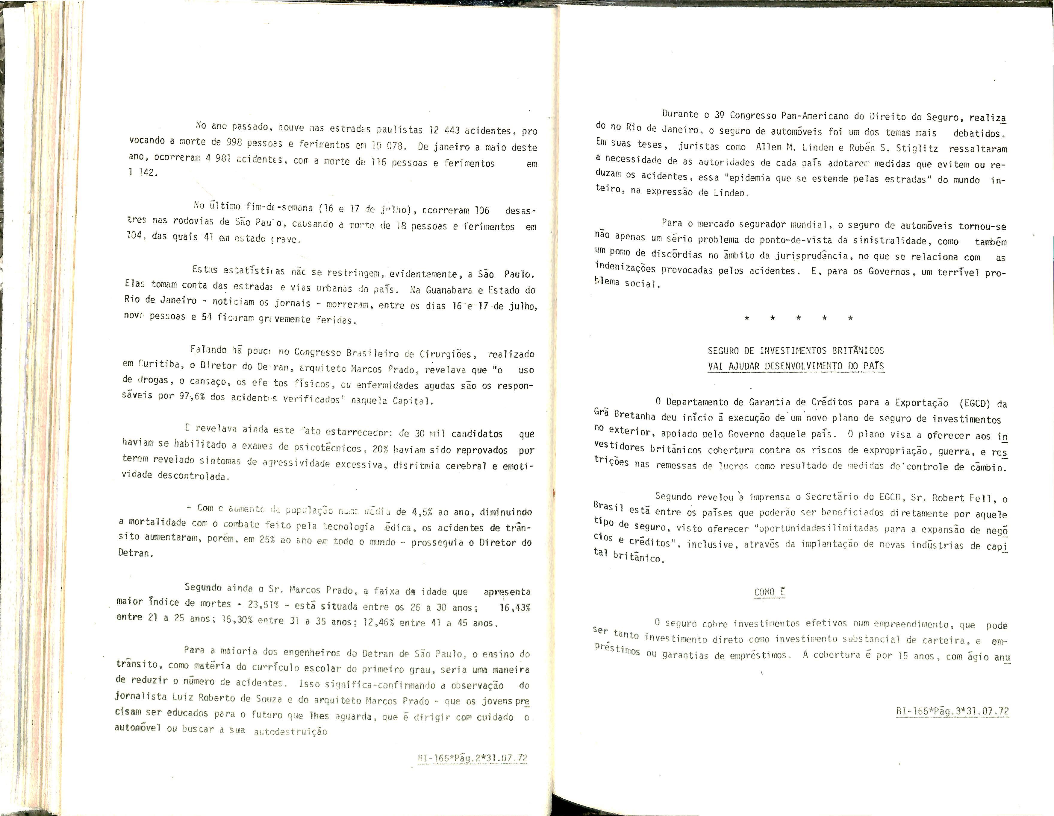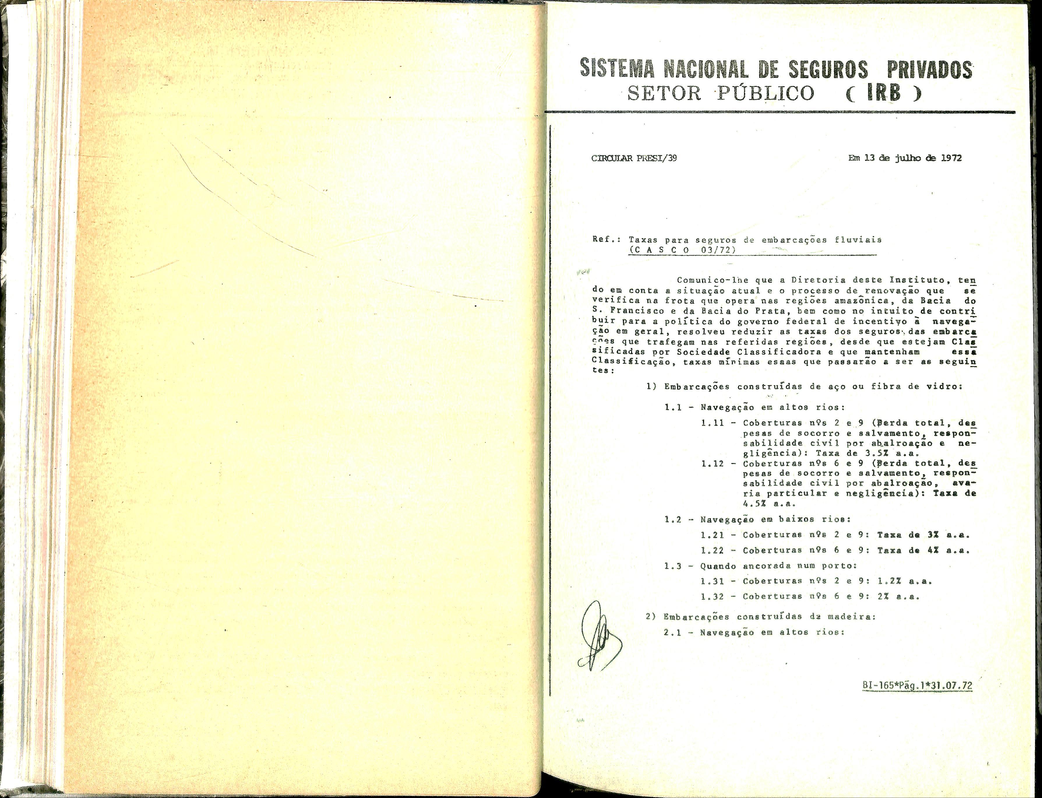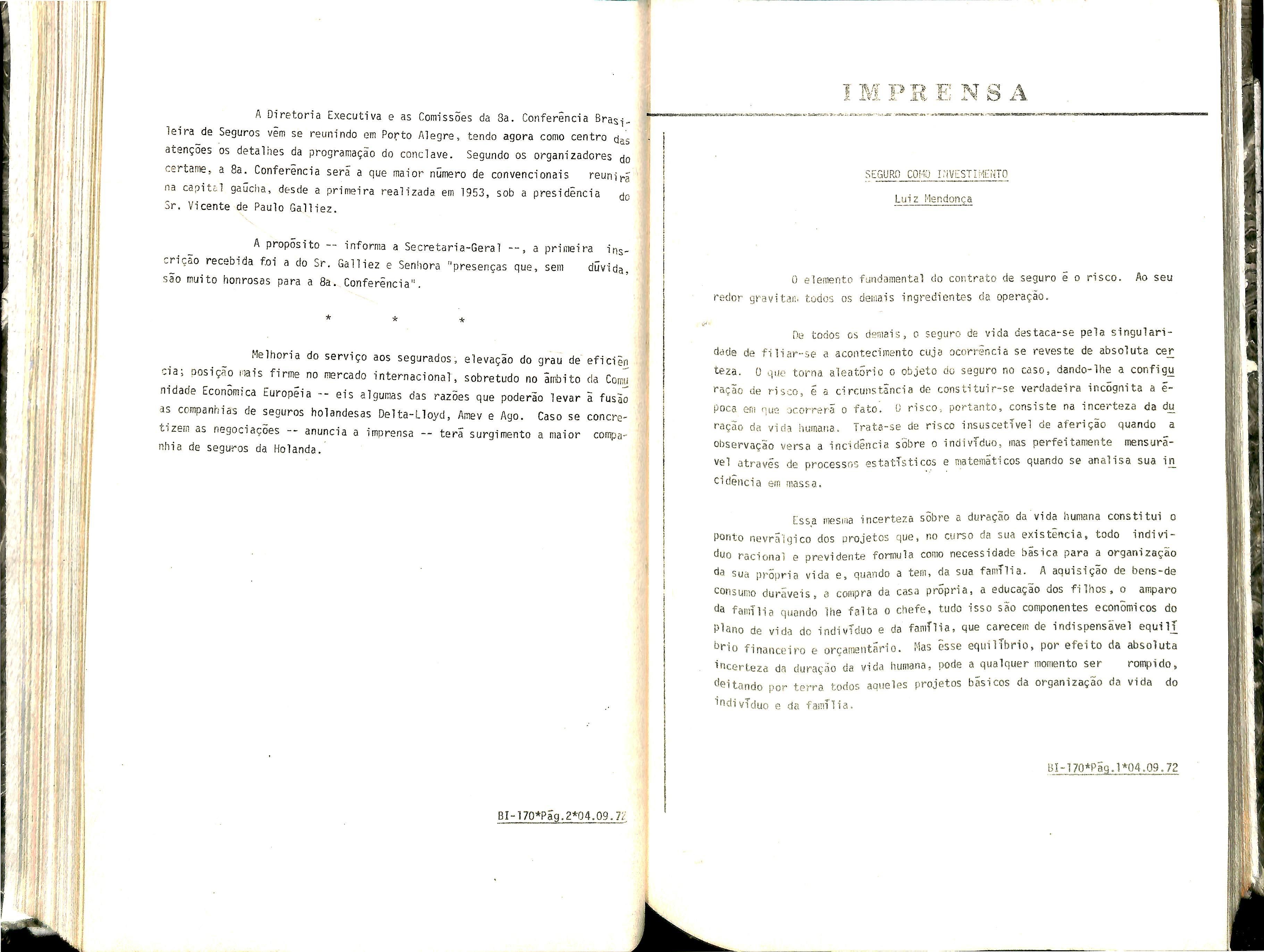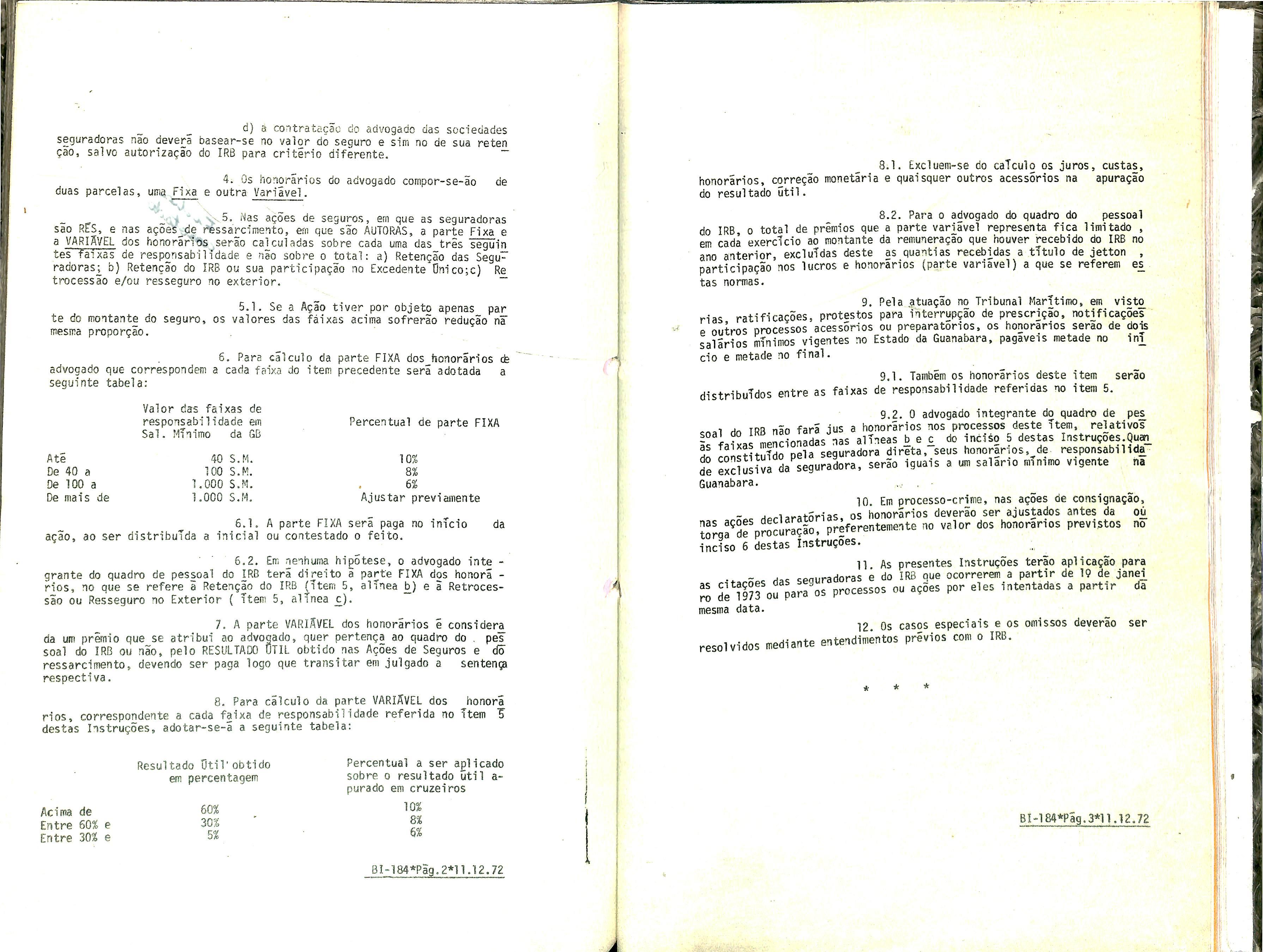A tese, convert ida em principio le gal, foi então amplamente fu ndament ad a em todos os aspectos: jurídico, econôm i co, financeiro e técnico . O In~ tituto de Resseguros do Brasil (IRB) , em face de reações isoladas que se _registraram em alguns pa1ses , chegou a editar monografia bi l in gue, explicando e justificando de forma exaustiva a medida brasileira .