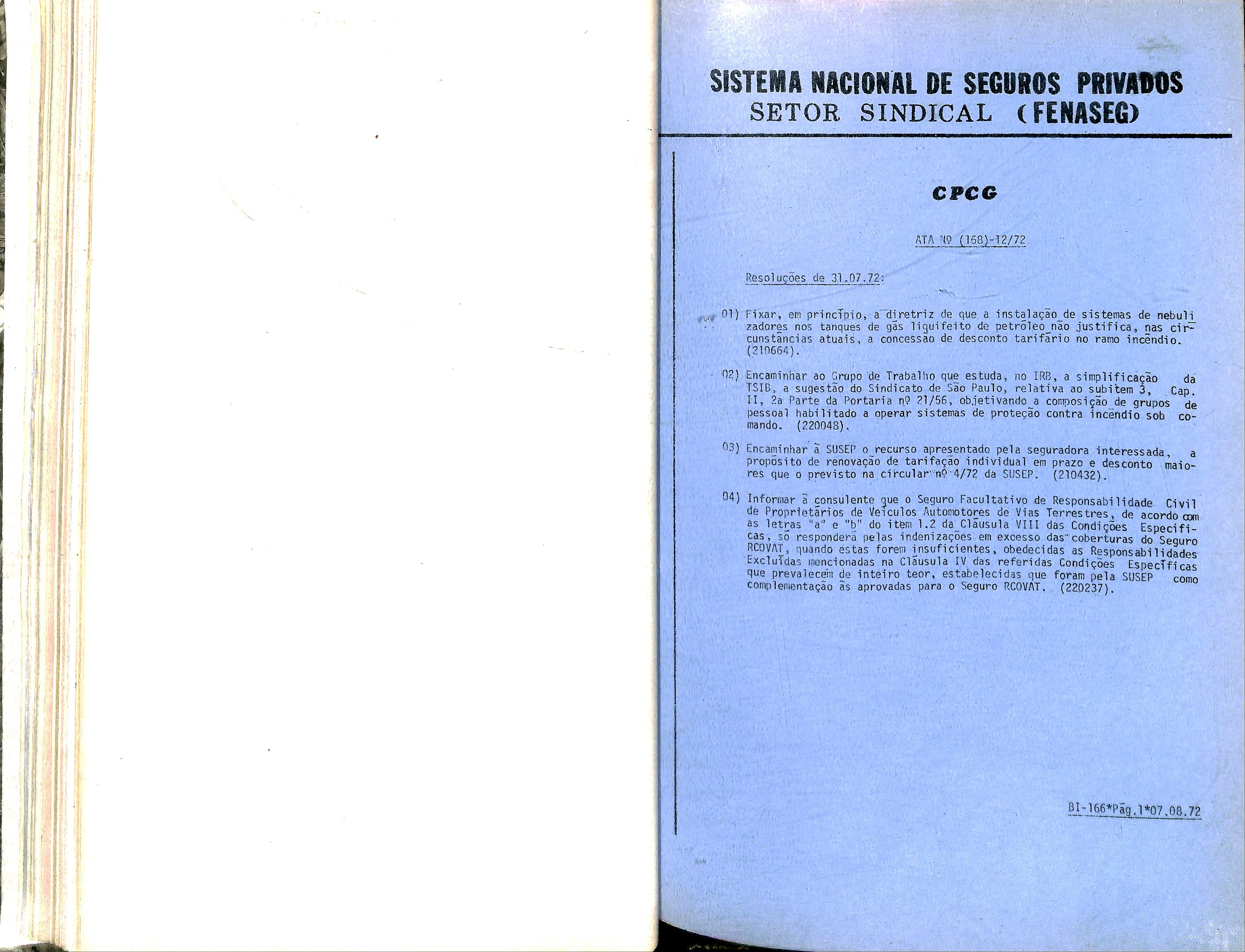 O Conselho Nacional de Seguros Privados aprovou e divulgou resolução que modifica o texto da regulamentação do Seguro de Responsabilidade Civil dos Proprietârios de Veículos Automotores de Vias Terrestres (RCOVAT}. A Resolução estabelece, entre outras medidas: 1) supressão do desconto de 10% nas tarifas das categorias 1 e 2 e de 50% na categoria 10; 2) extensão da cadu cidade do seguro ao caso do roubo de veiculo, devidamente atestado por certidãõ de Õrgão policial; 3) elevação para CR$ 3,92 da tarifa Ünica fixada para seguros de veículos enviados por fabricantes a concessionãrios e distribuidores. 2