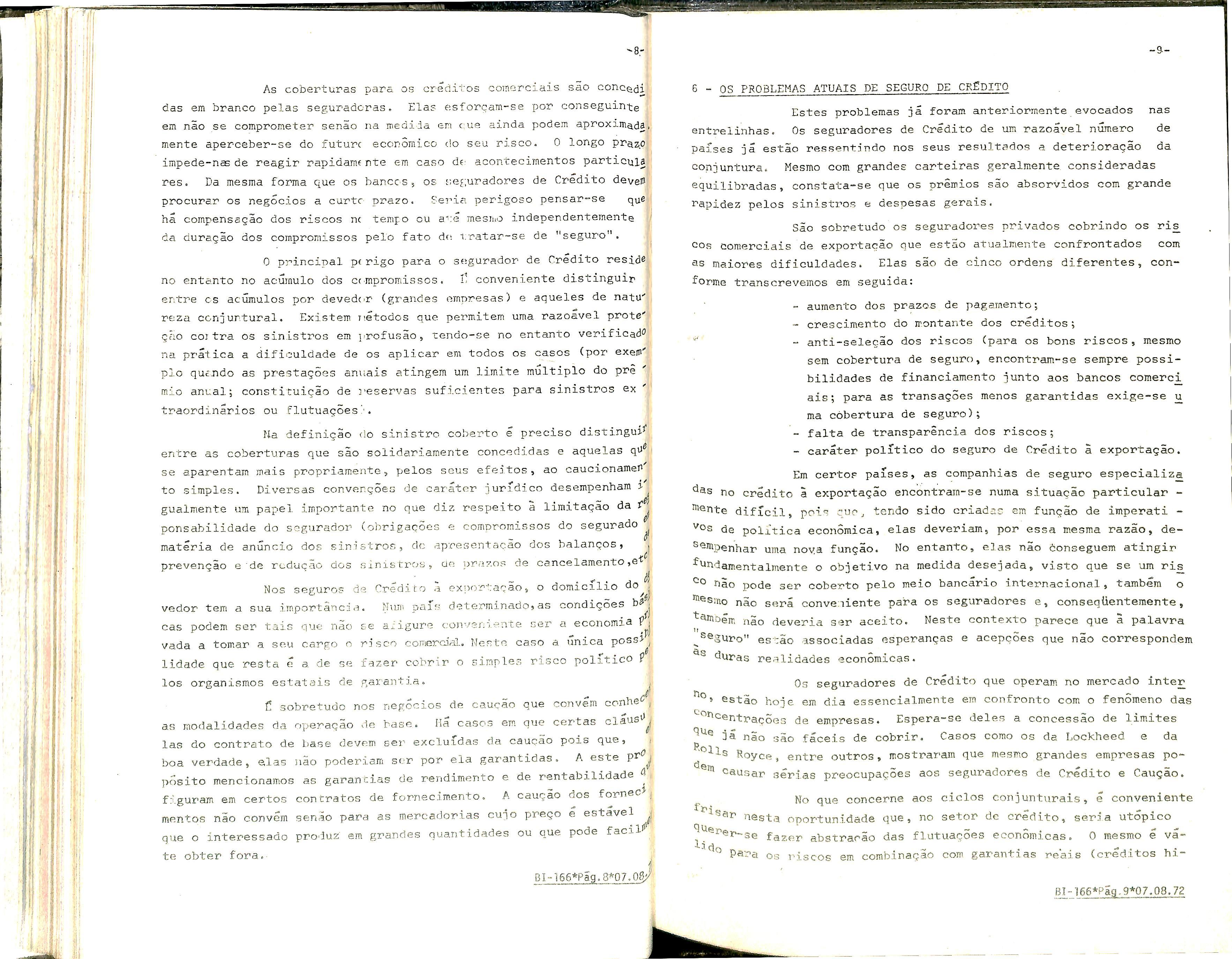 Técnicos do setor frisa m, aind a , que o at lrnl esforço de exportação da economia brasileira, realizado como i mperativ o es tratégico do desenvolvimento nacional, não poderia continuar pre j udicado pe la pr essão negativa decorrente da ali enação dos seguros de importações, urna d as fontes do tradicional"deficit" de se·ryi ços do nosso Balanço de Pagamentos.
