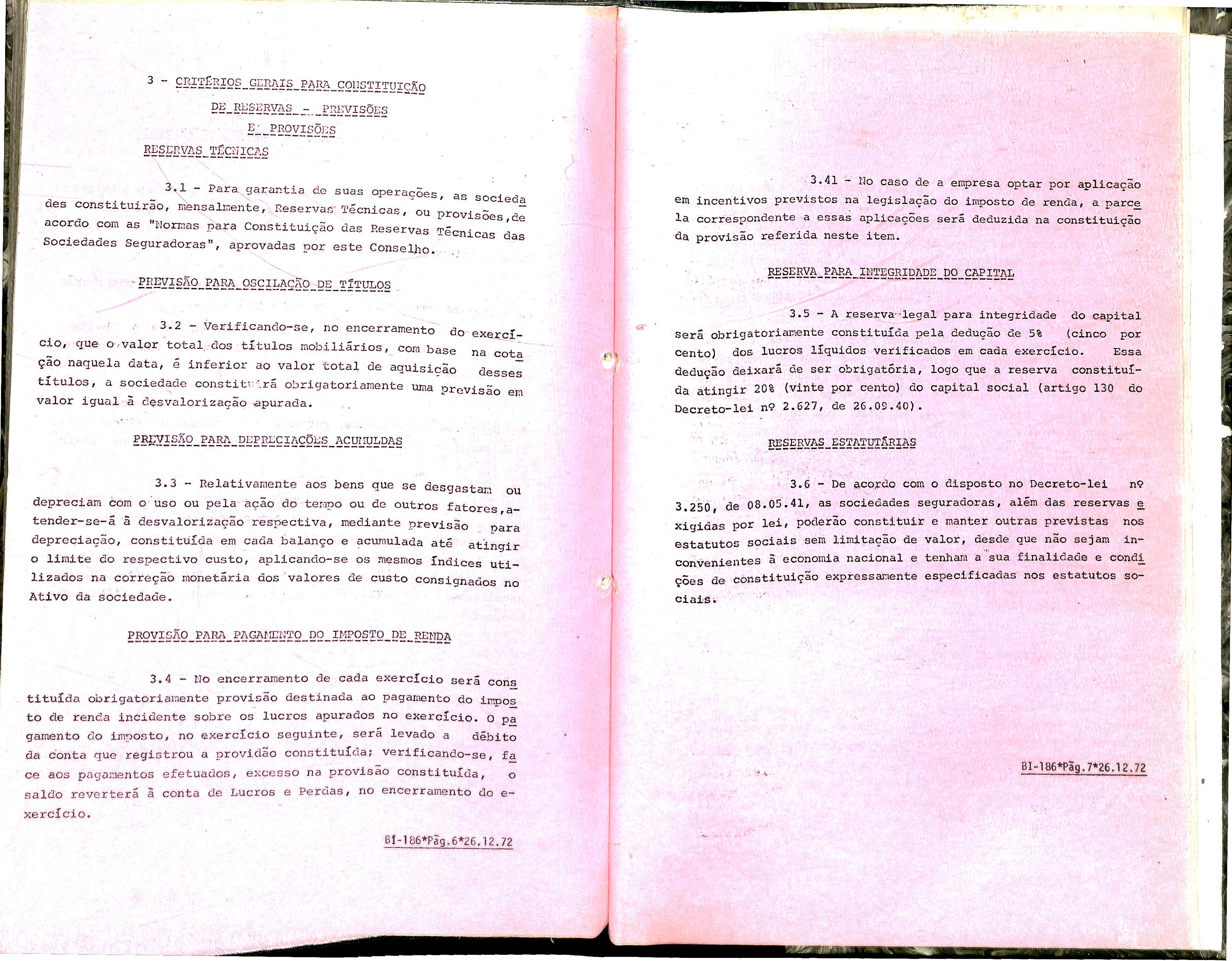As r eservas t~cni c as t~ m a f i nalidade de oferecer garantias s61 i das ao s com prom i ssos operac i on a is das compan hias de seguros. Mas, e m termos! con ~m ic o-financeiros, c or r espon dem a poupanças cr is ta l izad as r atrav~s del as que O Seg uro cumpre a função de J)romotor do deser.voivi :ne nto econômi co Sã o es ses recurso s que dão i s comp anhias de seguros a cate go ria de in vestido r as i nst i t 11c i on · - · en1 · · a 1s, rap e l que e l as de vem exe r cer, por conseguinte, no p ro pr10 pa i s que realizam as oper ações de seguros.