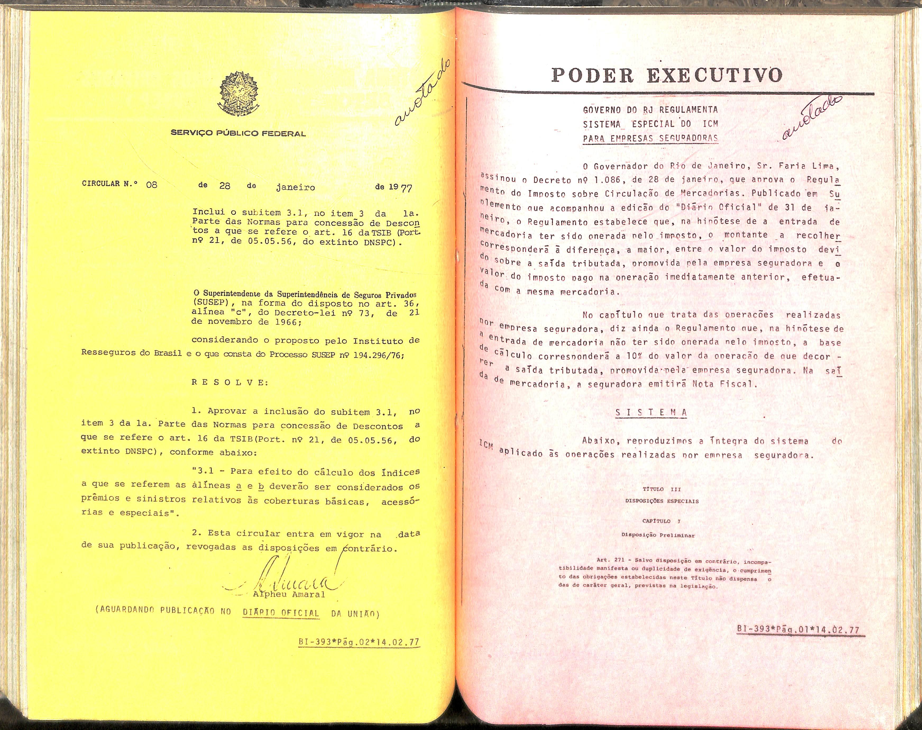 Mexo a esta edição, divulg~ a Resol uçãe 24/76? do Conselho Nacional de Seguros Privades, que da nova reda.çao. aos 1 tens 3~ a 32 das No_E nas Disciplinaoores do Seguro DPVAT, e que vigore a partir de 17 de no venibro p .findo. Tu aoorck> oom a no va redação, ficou e~tabelecicb a suspensão dã sociedade segure.dora para operar, se ela, em qualquer epoca, deixar de atender a quaisq~r das alíneas cb item 29 das Normas Disciplinadoras.