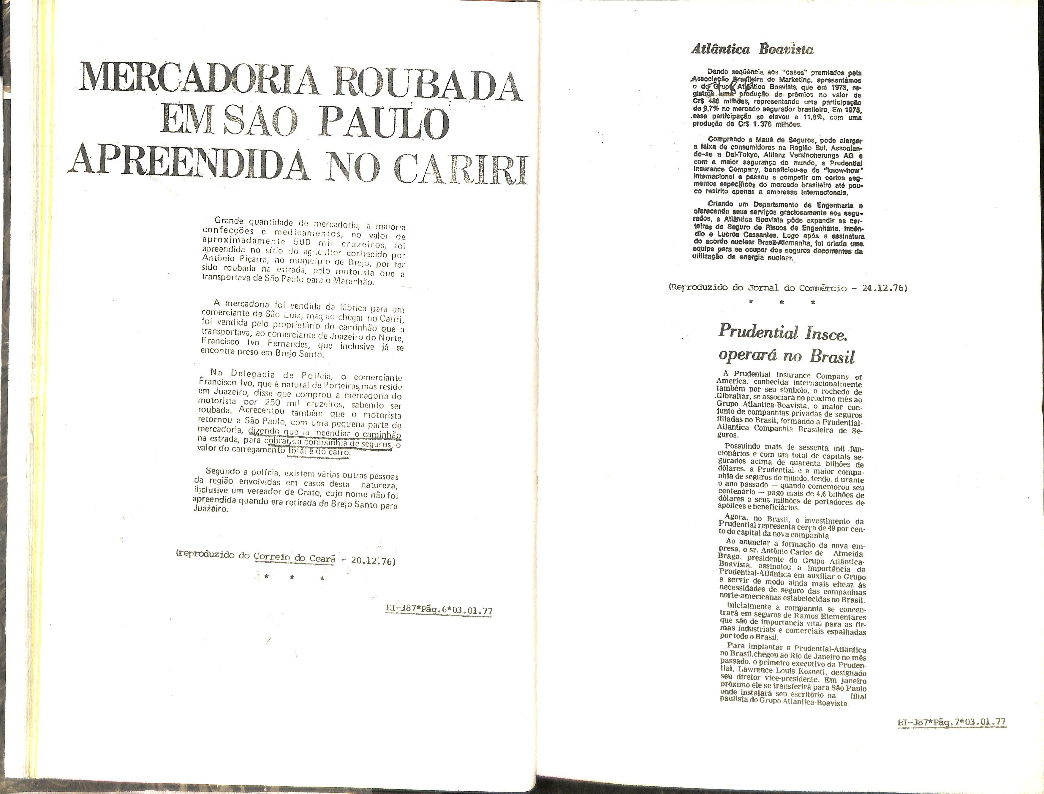 2 expressivas eh mercado segurador bresileiro: Vicente de Araujo. Presidente da Canpanhia de Seguros Minas.Brasil e oo grupo financeiro Mercantil do Bresil, Vicente. -AraÚj-o teve atuação das mais dinâmicas, ccnstituindo \IIl lJllportante CCJIJ>lexo segura.dor e financeiro Can o seu desaparecinento, o Jil?I'Cado financeiro_e, particularnente , o setor de seguros peroem um dos seus mais efici~ tes emp~arios .