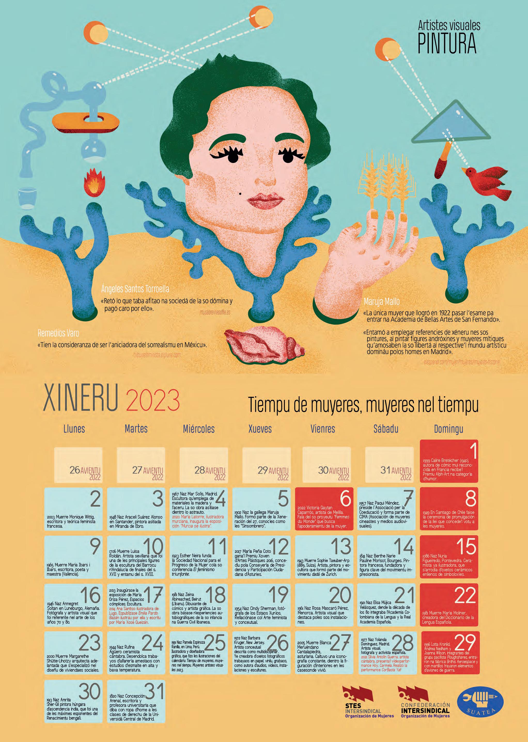 Calendario de STEs-intersindical y Confederación Intersindical "Tiempu de muyeres, Muyeres Nel Tiempu" 2023 - Artistes visuales - Asturiano
