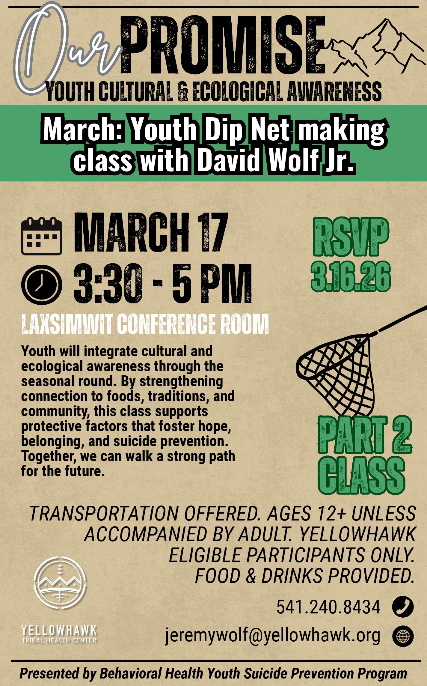 PUBLIC MEETING #1: Thursday, February 26, 2026 at 4:00 pm in the Cayuse and Umatilla conference rooms at the Nixyáawii Governance Center. Information on joining this meeting online is available at https://ctuir.org/ events/public-meeting-1-2020-ctuircoordinated-human-services-publictransportation-plan/. Participants may also join the meeting by phone by by calling 872-242-7793 starting at 4:00 p.m. The conference ID is 808 876 194#.