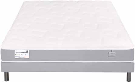 14 LE MYSTÈRE 3. 651 ressorts ensachés. Face hiver mousse Douceur 18 kg/m 8 mm; fibres hypoallergéniques 150 g/m, fibres Dynamic (complexage coton/laine) 400 g/m. Face été mousse Douceur 18 kg/m 8 mm; fibres hypoallergéniques 150 g/m. Coutil stretch 100% polyester traité anti-acariens et antibactérien. 160x200x25 cm. Code 0700106. 180x200x25 cm. Code 0700107. 1490,99€ 894,59€ À RESSORTS Les matelas Les ressorts ensachés permettent de soulager tous les points de pression et d’avoir une indépendance de couchage pour mieux dormir. Tous les produits sont fabriqués avec beaucoup de soin en France et dans le respect de l’environnement. 160X200 CM MATELAS LE MYSTÈRE 3 -40% 129099€ 77459€ Ressorts ensachés Epaisseur 25 cm Fabriqué en France Garnissage hypoallergénique Existe en 180x200 cm + 160X200 CM MATELAS LOTUS HD 2 -40% 859€ 51540€ Epaisseur 24 cm Fabriqué en France Ressorts ensachés Existe en 90-120-140x190 cm 90-120-140-160-180x200 cm + Ressorts ensachés Simmons Sensoft Mousse Elivéa hyper confortable LOTUS HD 2. 3 zones de soutien différenciées. Garnissage mousse de confort 22 kg/m³ 17 mm, ouate 300 g/m², mousse de confort 2x1 cm. Coutil plateau stretch 100% polyester traité anti-acariens et antibactérien. Matelas 90x200 cm. Code 725411. 579€ 347,70€ Matelas 140x200 cm. Code 725414. 799€ 479,40€ Matelas 160x200 cm. Code 725415. 859€ 515,40€ Matelas 180x200 cm. Code 725416. 990€ 594€ AVEC LA COLLECTION ALLURE EPEDA PROFITEZ D’UNE GAMME DE PRODUITS TOUJOURS PLUS SAINE ET RESPECTUEUSE DE L’ENVIRONNEMENT