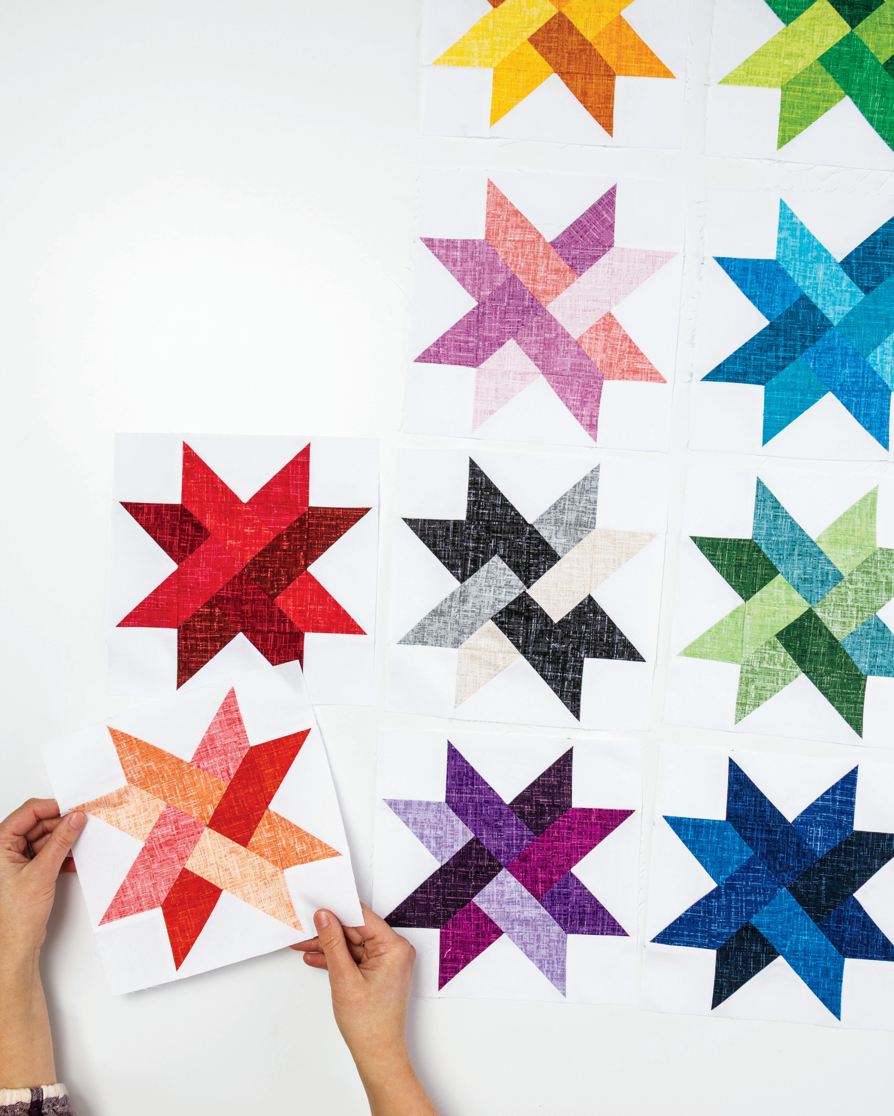The detail in these blocks looks amazing on point, and plenty of breathing room lets each fabric shine. We love the airy mood of this lighthearted design.