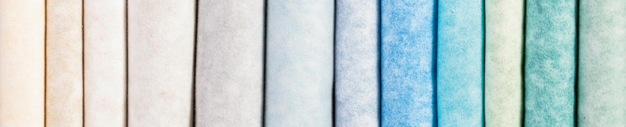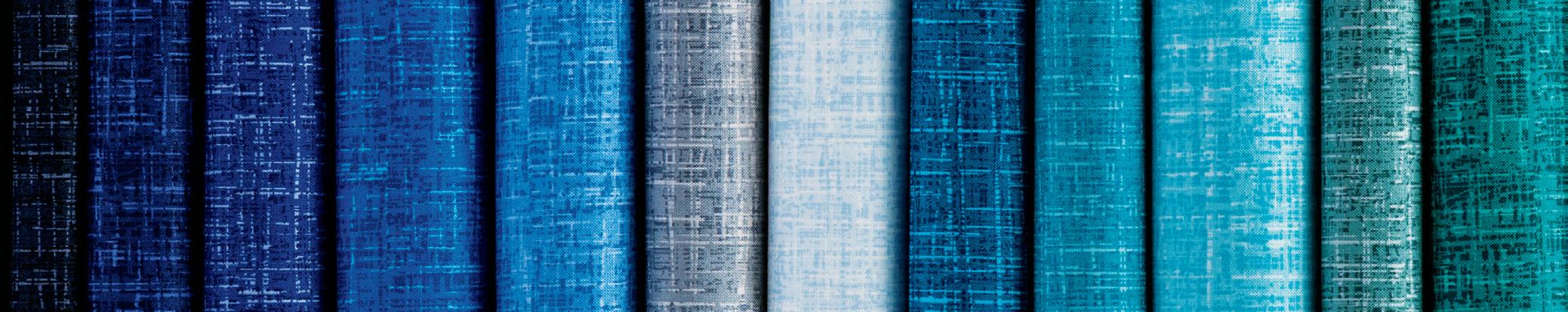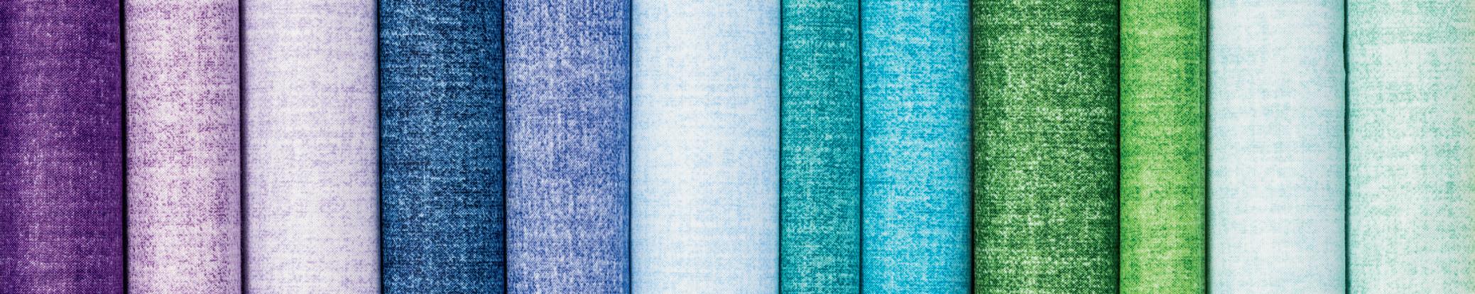 grouping of cool colors pulled from our Color Wheel Solids Collection. 18 of the 43 colors shown.