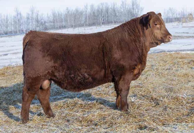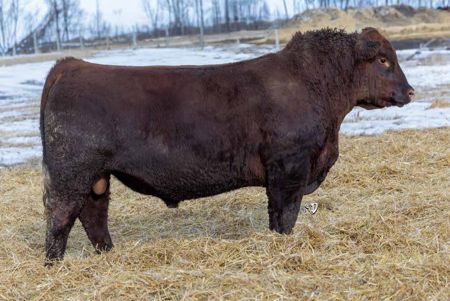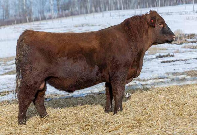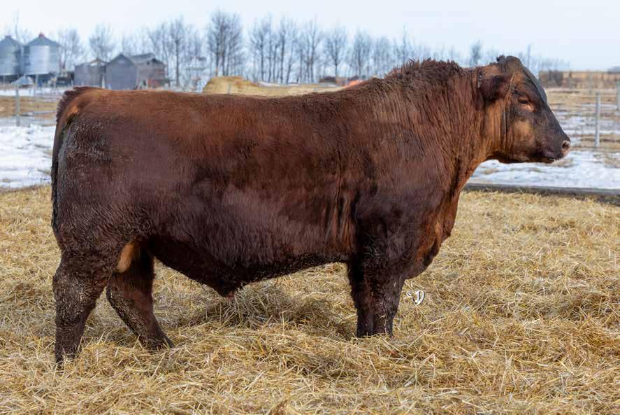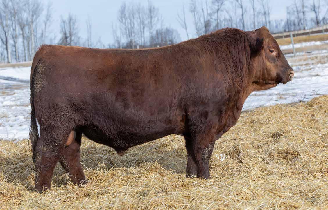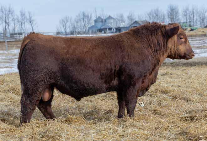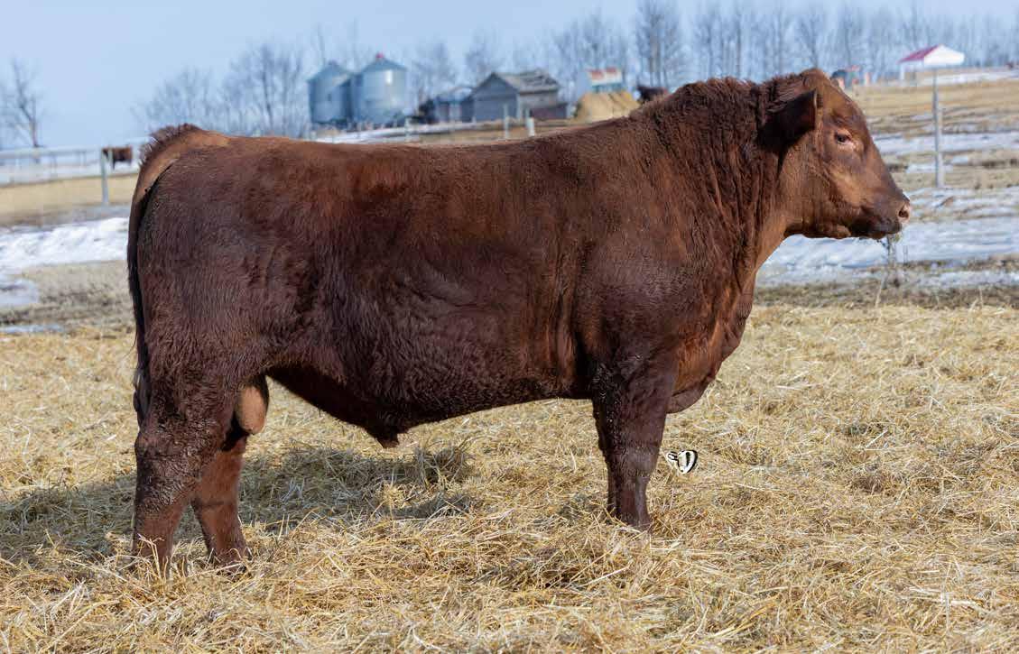 429N is the youngest bull in the sale but he certainly doesn’t fall behind in masculinity or scrotal size. His dam has been a good producer with two daughters sold at Red Roundup including the Monique 413K cow that is one of the top females in the Olds College Purebred Red Angus herd.