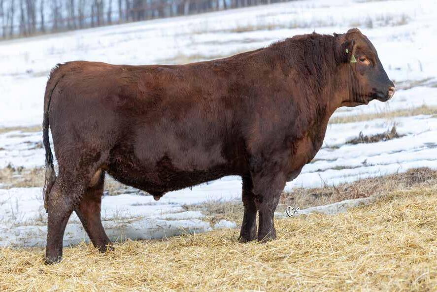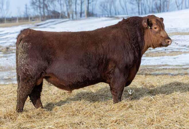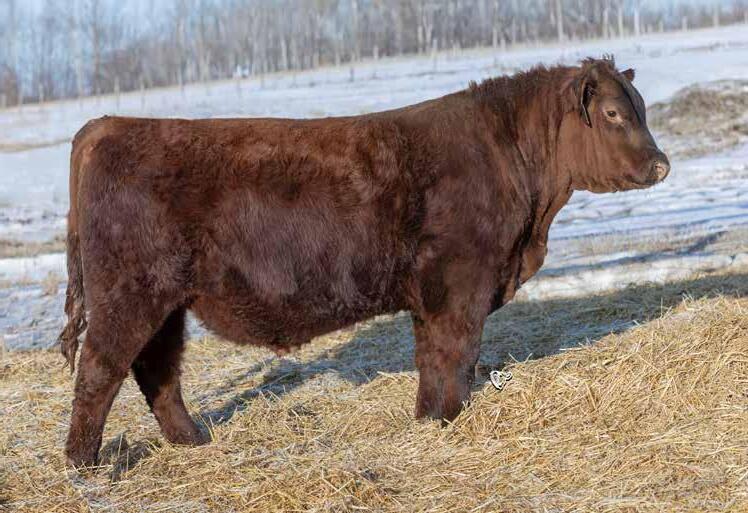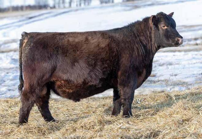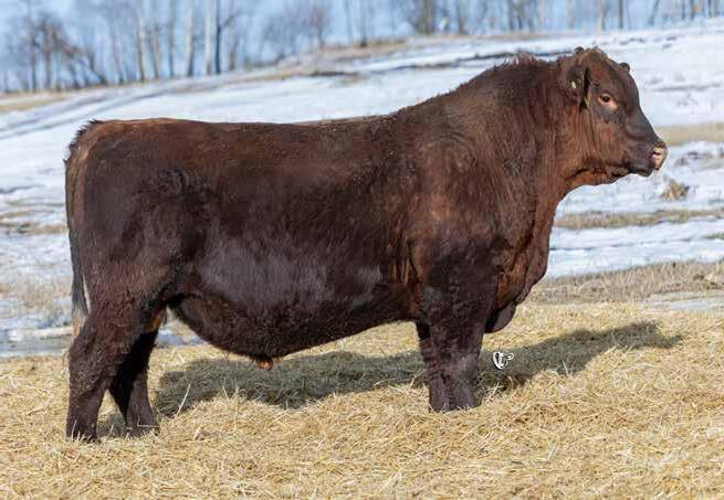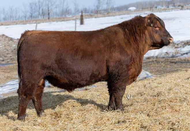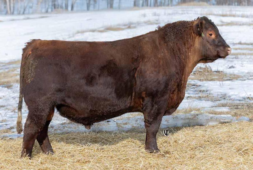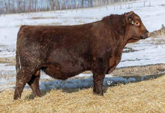 Dark headed, dark red, smaller framed bull that should be a calving ease candidate. His sire, Wilbar Foresight, left us a good set of calves, just not many bulls. We showed two daughters last fall including the Reserve Champion Intermediate Heifer Calf at Farmfair.