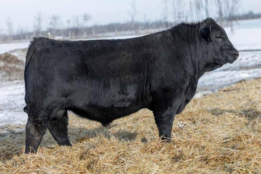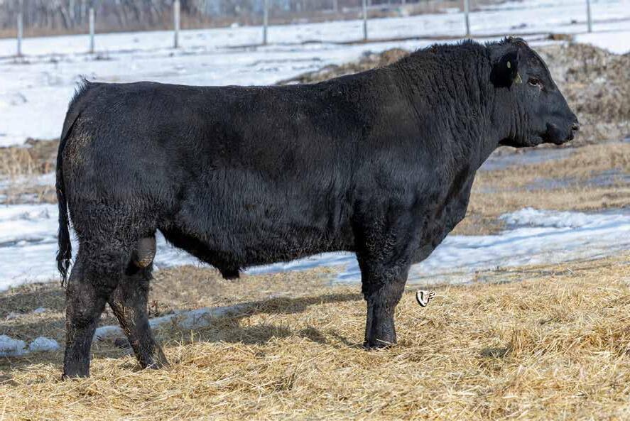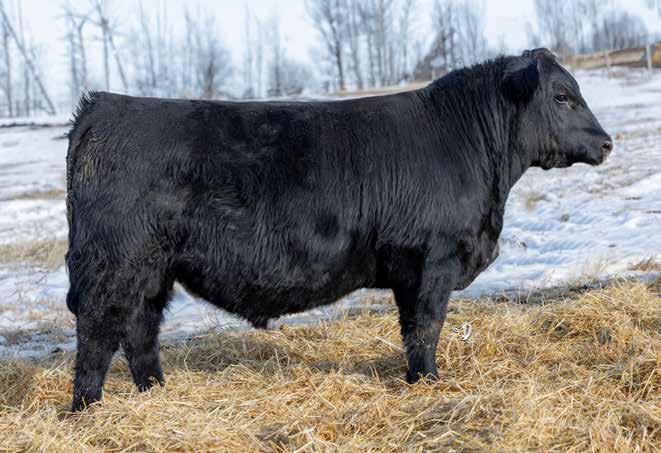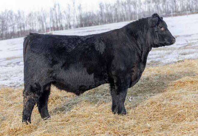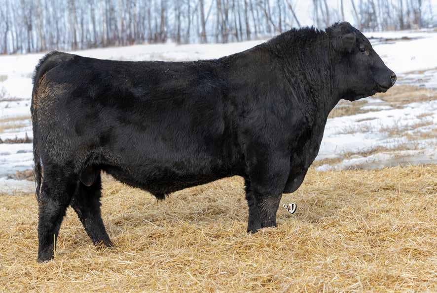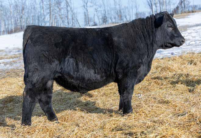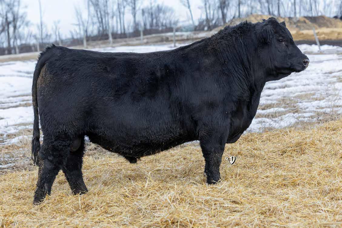 4N is a very complete, easy fleshing, stout made bull with very good feet. His dam is a standout Sitz Stellar daughter with a great wedge shape and nice udder. She raised our high selling black yearling bull last year to Brewin Angus, Taber, Ab. She is a direct ET daughter of our full Argentine donor cow, 7Z, who is the dam of Lot #38.