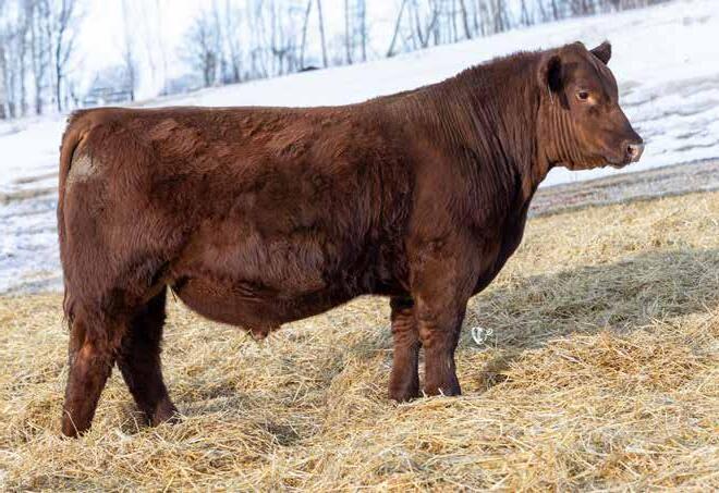 3N is a calving ease prospect that couples a low birth weight with a small head and smooth shoulder. We went way back to use the VDAR New Trend 315 bull that pedigree hounds will really like. He was born in 1988 and was designated an elite sire with over 1400 direct progeny in the Canadian Herdbook.