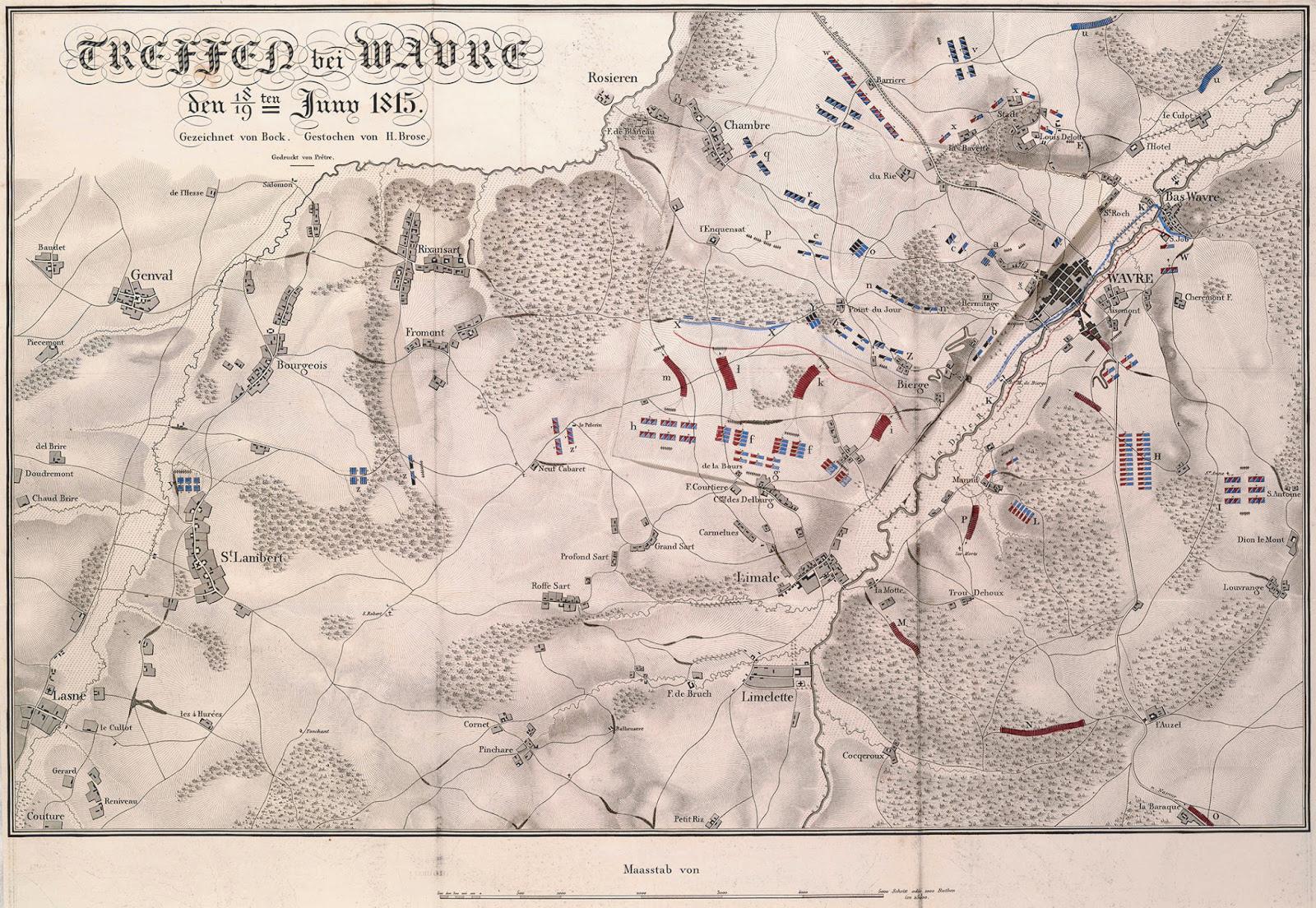 The leaders of the major European powers, busy carving up post-Napoleonic Europe at the Congress of Vienna, mobilized their armies to suppress the resurgent Emperor, planning a multinational invasion, set for July 1st. The most immediate threat was a pair of Coalition armies in Belgium, hard against the French border. These consisted of an Anglo-Allied force of 112,000 men, led by the Duke of Wellington, deployed in and around Brussels, and a Prussian army of 130,000 men, commanded by Napoleon’s aging nemesis Marshal Blücher, deployed around Namur. Austrian columns began concentrating along France’s southern borders, while a massive Russian army of 250,000 men set out for the French frontier.