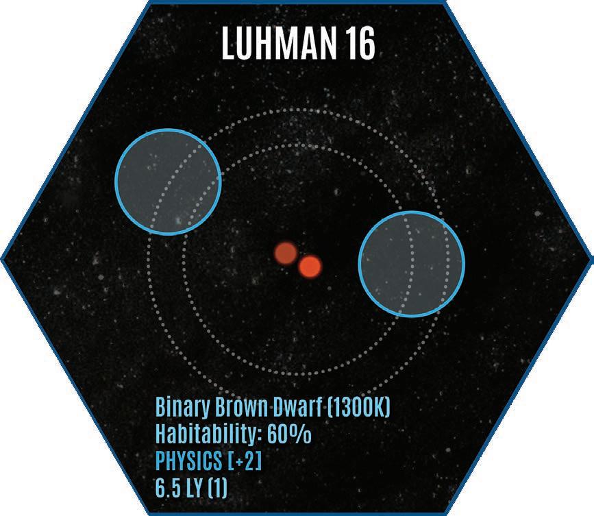 Example: The Consortium and True Path both have bases in the Luhman 16 system with 2 and 15 settlements, respectively. Since both players have bases, the system max population for growth and migration is 26 + 1 - 10 = 17. The Consortium automatically adds 1 settlement (10 or fewer) and rolls a die for migration. The roll is ‘36%’, under the habitability of Luhman 16 (60%) so the Consortium gets to add another settlement, making 4 total. The True Path gets one settlement for having a full 10 settlements, then rolls a die