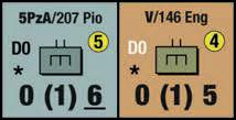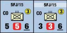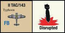 Air Units. These represent the historical air groups that participated in the battle. Each counter shows the air unit’s formation (top), aircraft type (upper-left), overhead image (center) and air-mission type (lower-left). German jet aircraft have a “J” marking (lowerright). The background color represents its nationality – U.S. (serge brown), British (khaki) and German (light blue).