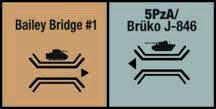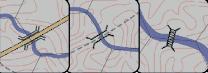Fords. Fords are depicted by two dark grey, dashed parallel lines across a river or waterway hexside. They represent natural river and waterway crossings with relatively shallow, slow-moving water and firm beds that enable determined infantry and light armored vehicles to cross them with limitations. 1