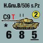 “Tiger” Tanks. The Germans employed several heavy panzer and Panzerjäger battalions that were often identified as “Tigers” by Allied troops. These are identified by a red “T” adjacent to the combined arms/armor class marking (e.g., C8T or C9T).