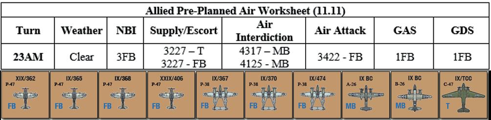 The Player Aid Cards contain the most frequently used charts and tables that summarize the body of the rules. Each scenario has game status, victory condition and air/ground order of appearance (OOA) charts that describe unit type, strength, movement and arrival data.