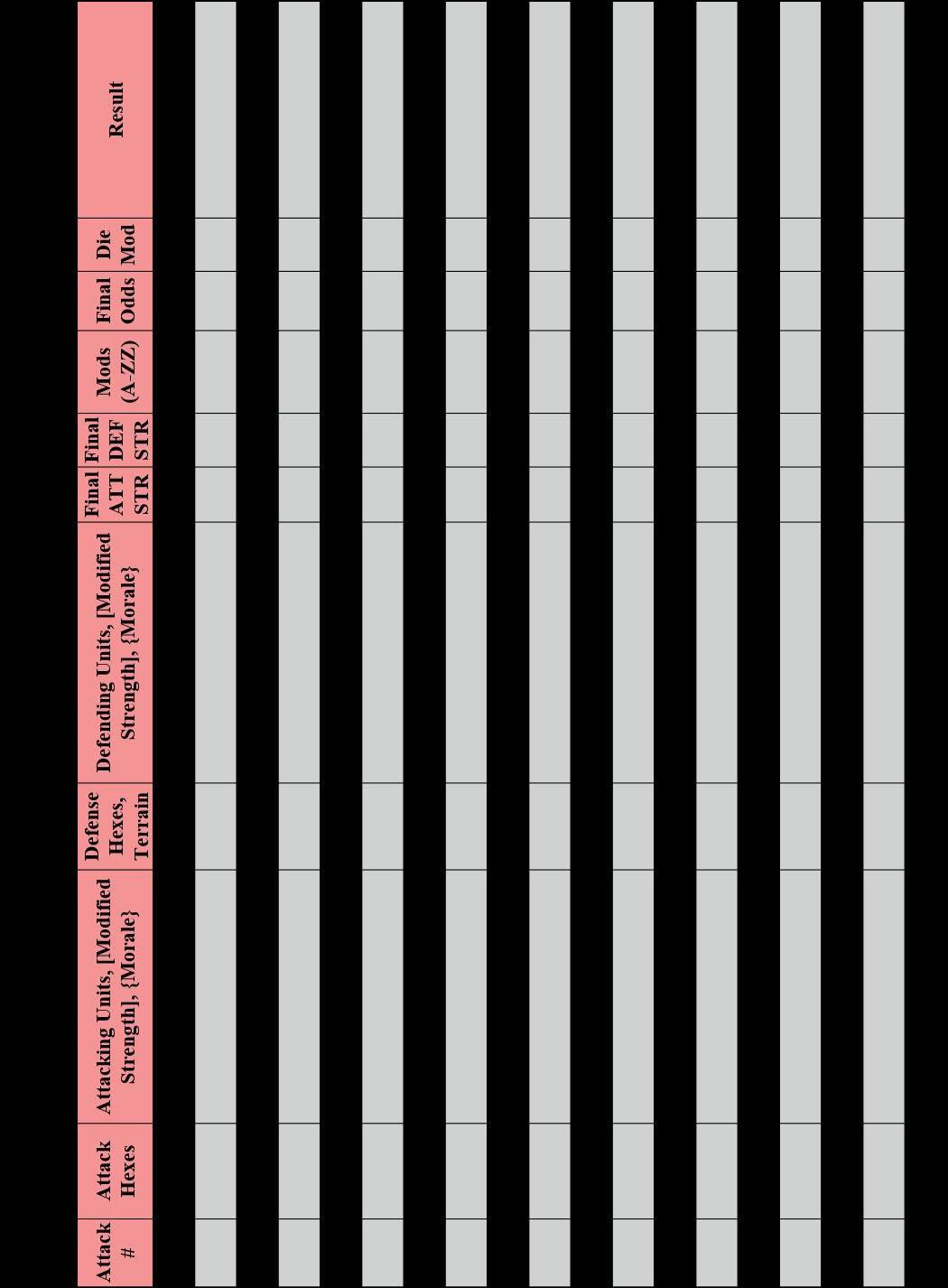 Write in the scheduled infantry and armor replacement points per the scenario game status card. Use a pencil hash-mark (I) to record each infantry and armor step loss as they occur in those columns.