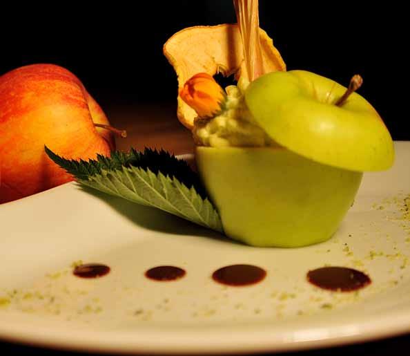 » Tutti gli ingredienti dovrebbero essere freddi. Guarnire con spicchi di mela freschi o essiccati.