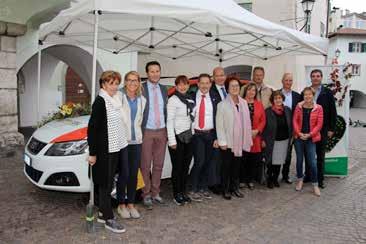Einweihung neues Autos für den Krankentransport Im Herbst letzten Jahres musste das Auto des Bezirks ausgetauscht werden, da es in letzten vier Jahren über 250.000 km mit den 12 freiwilligen Autofahrern gefahren hatte. Dank einiger privater Sponsoren (Stiftung Südtiroler Sparkasse, „Run for Life“ und der Baufirma Volcan) und allen 18 Gemeinden der Bezirksgemeinschaft wurde der Kostenbeitrag gedeckt. Bei einer kleinen Feier am Hauptplatz wurde das Auto von Dekan Josef Haas gesegnet, die Gemeindevertreter hielten Ansprachen, auch die Landespräsidentin Ida Schacher war aus dem Pustertal angereist und erinnerte daran, dass nur dank des unermüdlichen Einsatzes vieler Freiwilliger die Solidarität funktionieren kann. Zum Schluss gab es noch einen kleinen Umtrunk und alle konnten das neue Auto für den Patiententransport begutachten.