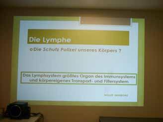 Ingeborg Nollet, Physiotherapeutin der Krebshilfe, hielt einen interessanten Vortrag über das Lymphsystem, die Schutzpolizei des Körpers. Mit anschaulichen Bildern begleitete sie ihre Ausführungen. Das Lymphsystem ist für eine Vielzahl von Funktionen zuständig. Eigentlich könnte man es auch als Abfallentsorgungsystem bezeichnen. Anhand der Präsentation konnten die Teilnehmer die Wichtigkeit eines gut funktionierenden Lymphsystems erkennen.