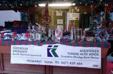 Infostand Weihnachtsmarkt Schlanders Während der Adventszeit herrschte in der Fußgängerzone von Schlanders eine vorweihnachtliche, besinnliche Stimmung. Anlass auch für Interessierte mit Vertretern der Krebshilfe ins Gespräch zu kommen und sich über die Angebote unserer Vereinigung zu informieren.