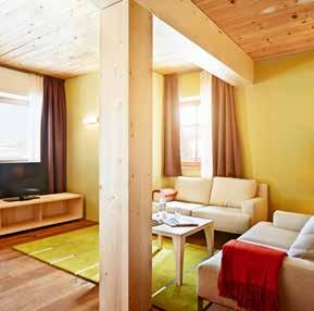 + Individuell gestaltete Zimmer und Suiten mit Böden, Decken und Wänden aus naturbelassenem Holz