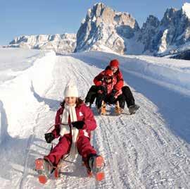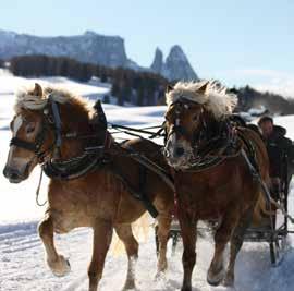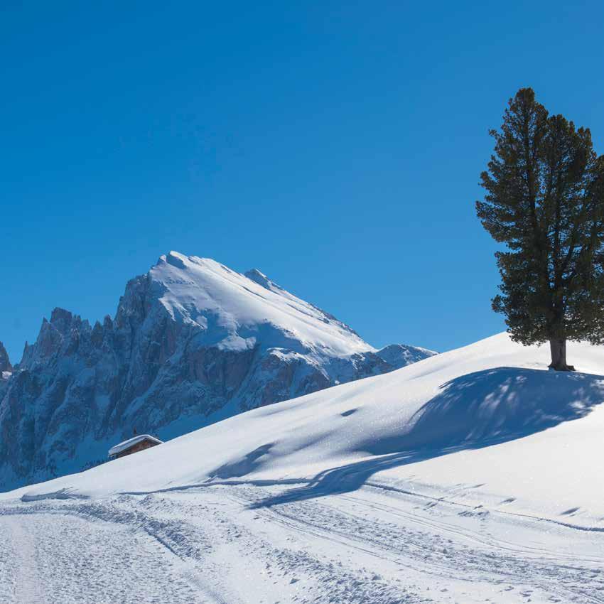 Snowy slopes and Nordic ski runs meander gently across rolling hills, framed by the towering peaks of the Dolomites UNESCO World Heritage. Snowshoeing and ski touring fans are rewarded with magnificent