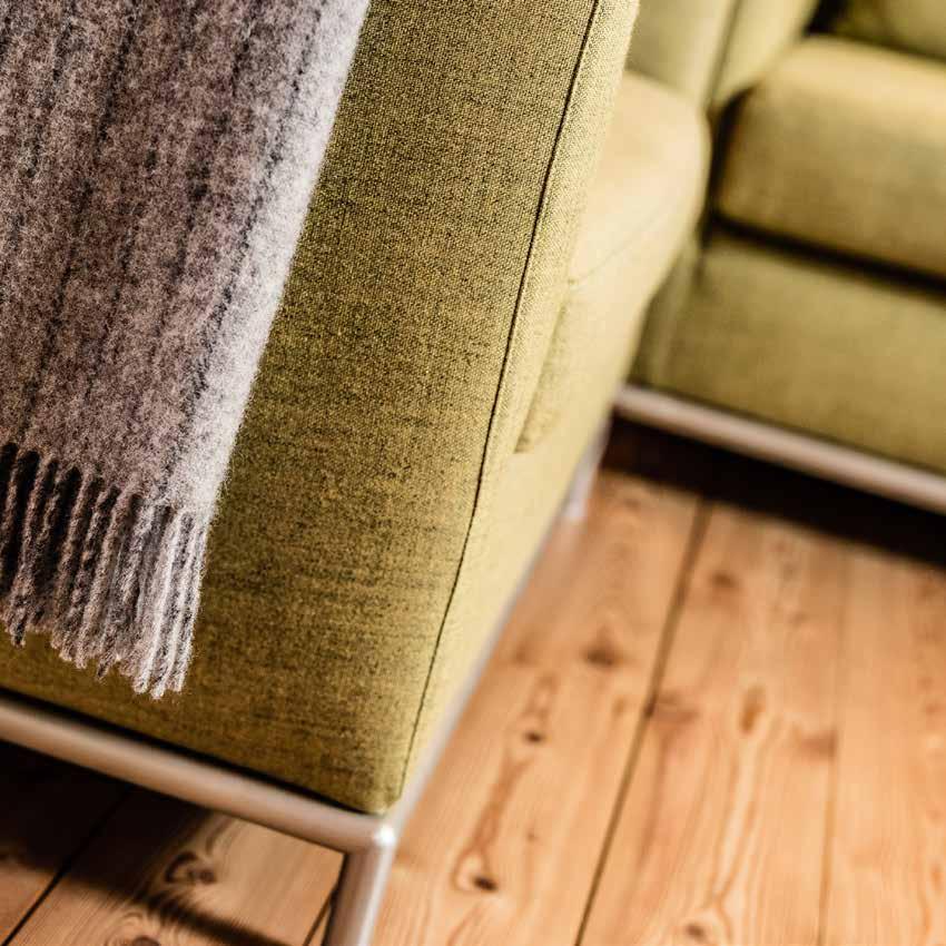 Design suite built from wholesome wood (about 50m²) consisting of two separate rooms, lovingly designed bathrooms with shower, and separate toilet. Amenities include: garden-facing balcony with view of the Dolomites, minibar stocked with mineral water, spa bag with bathrobe and slippers, Sat-TV, safe, telephone, and complimentary Wi-Fi.