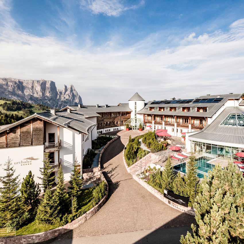 From north: Take the A22 motorway and exit at Chiusa. Follow the national road towards Bolzano; once you reach Ponte Gardena, turn left. Follow the signs towards Siusi and the Alpe di Siusi. The Urthaler is located directly on the Alpe di Siusi, in the village of Compaccio, on the left side of the road.