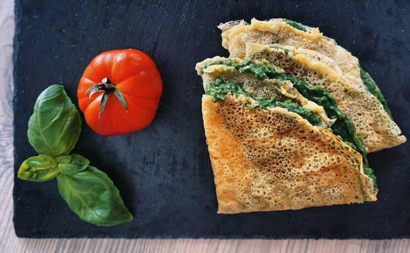 Crêpes können entweder warm (eventuell gefüllt kurz im Backrohr aufwärmen) oder auch kalt (z.B. für einen Picknick) verzehrt werden. Durch die Kombination von Getreide (Weizen) und Hülsenfrüchten (Kichererbsenmehl und Bohnen) ist das Gericht reich an hochwertigem Eiweiß. Für eine glutenfreie Variante das Weizenmehl mit einem glutenfreien Mehl (z.B. Buchweizenmehl oder Reismehl) ersetzen.