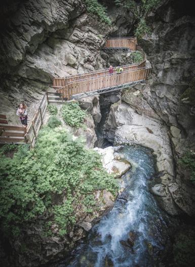 The power of water In millions of years, the exuberant mountain streams have made their way through ice and rock and are rushing untamed to the valley. The roaring waterfalls of the gorge Gilfenklamm in Stanghe are truly an incomparable natural spectacle and the gorge is considered as one of the most beautiful accessible gorges.