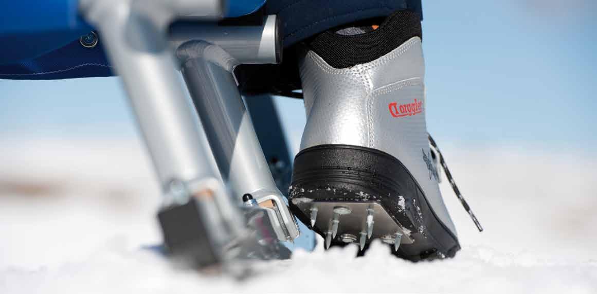 Bremsen Beim Bremsen kommen beide Schuhsohlen flach auf dem Schnee zum Einsatz. Das Anheben der Rodelhörner verstärkt den Bremseffekt.