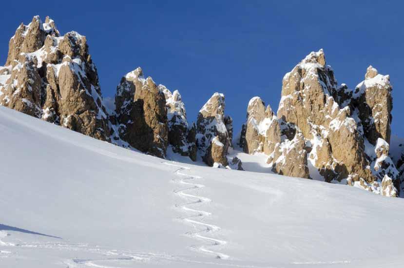 Skitouren boomen. Verständlich, zu schön ist es, abseits flachgewalzter Pisten auf jungfräulichen Pulverhängen als Erster Skispuren zu ziehen, beim Aufstieg die Stille der Bergwelt zu genießen, bei der Abfahrt das Wahnsinns-Gefühl der Freiheit auszukosten. Und wenn die Dolomiten, diese prächtigen versteinerten Korallenriffe rund um die Seiser Alm, inzwischen zum UNESCO-Weltnaturerbe erklärt, sich in eine weiße Decke hüllen, dann halten es begeisterte FreerideFans nicht länger im Tal aus.
