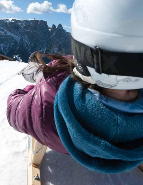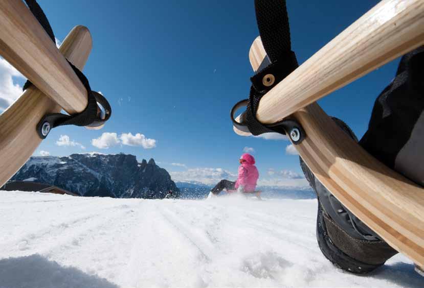 dopo una sosta in un tradizionale rifugio godersi una divertente discesa. Gli slittinisti più tranquilli e coloro che desiderano effettuare più di una discesa possono utilizzare seggiovie e funivie per arrivare in quota. Molto apprezzate dai ragazzi sono le discese in slittino al chiaro di luna, ma la notte bisogna fare ancora più attenzione in modo da non compromettere il divertimento. Di giorno invece bisogna fare molta attenzione a non scontrarsi con sciatori, boardisti e pedoni. L’Alpe di Siusi offre spazi adatti per qualsiasi tipo di sport invernale, tuttavia tutti sono tenuti ad attenersi alle regole di comportamento sulle piste in modo da non compromettere la propria sicurezza e quella degli altri. Per motivi di sicurezza è proibito usare lo slittino sulle piste da sci. L’Alpe di Siusi vanta numerose piste per slittino sicure e ottimamente preparate, tra queste ricordiamo la pista Spitzbühl (1,9 km), l’IcaroMonte Piz (1,4 km), il Zallinger (4,7 km), la Bullaccia (2 km), la pista presso il Rifugio Molignon (3,5 km) nonché la pista nei pressi dell’Albergo Panorama (1,4 km). Un’ulteriore pista per slittini si trova nei pressi della Malga Tuff (2 km) a Fiè allo Sciliar. L’utilizzo delle piste per slittino nell’area vacanze Alpe di Siusi è gratuito. Chi non possiede uno slittino può noleggiarlo presso uno dei tanti noleggi sci oppure presso la fermata a monte degli impianti di risalita.