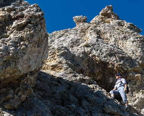 Per quanto bella e precisa, nessuna tavola esplicativa sarà mai in grado di sostituire la competenza di una guida esperta, anche solo per il fatto che non è possibile fare domande a un cartello. Effetti collaterali del percorso geologico Geotrail? Ce ne sono parecchi: dietro ogni curva si aprono panorami mozzafiato sulla “più bella architettura del mondo”, più in là si aprono scorci “dentro” le Dolomiti, come sottolinea il dott. Nössing con verve, e come omaggio di benvenuto, la no-