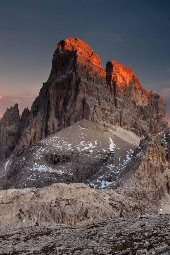 Die Dolomiten, UNESCO-Welterbe, zählen zu den schönsten Bergen der Welt. Ihre Besonderheit erstrahlt bei Sonnenaufgang und bei Sonnenuntergang, wenn das prächtige Farbspektakel Enrosadira einsetzt, als Alpenglühen bekannt.