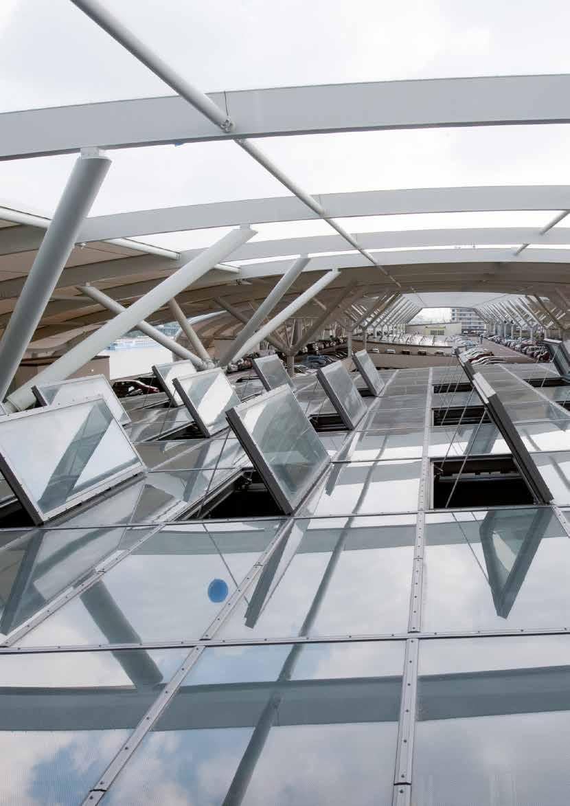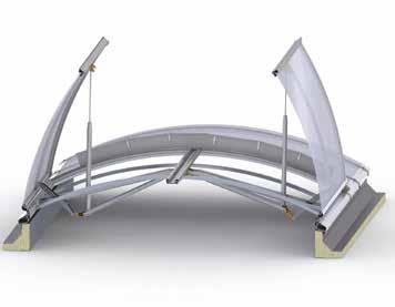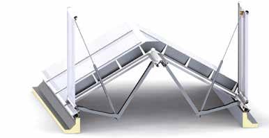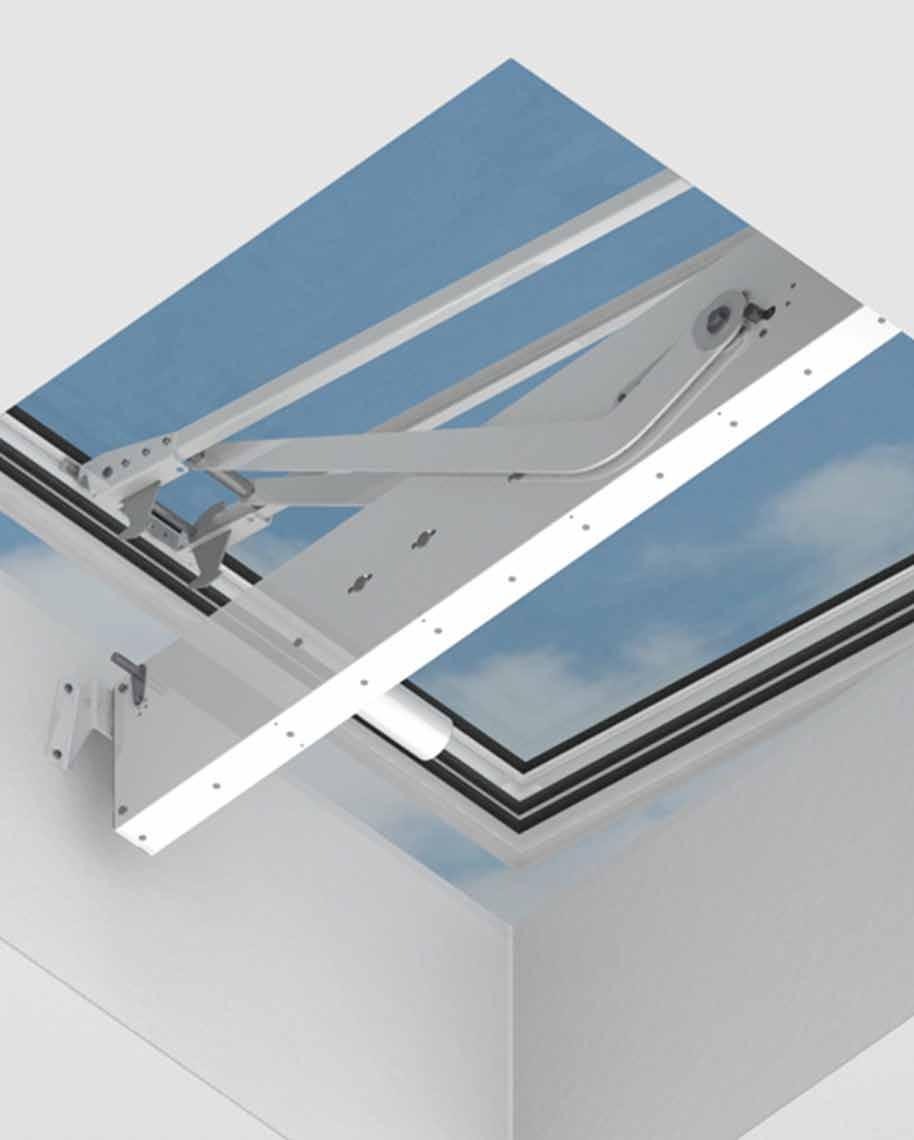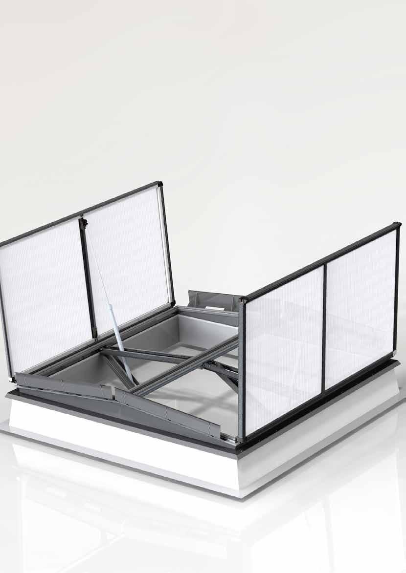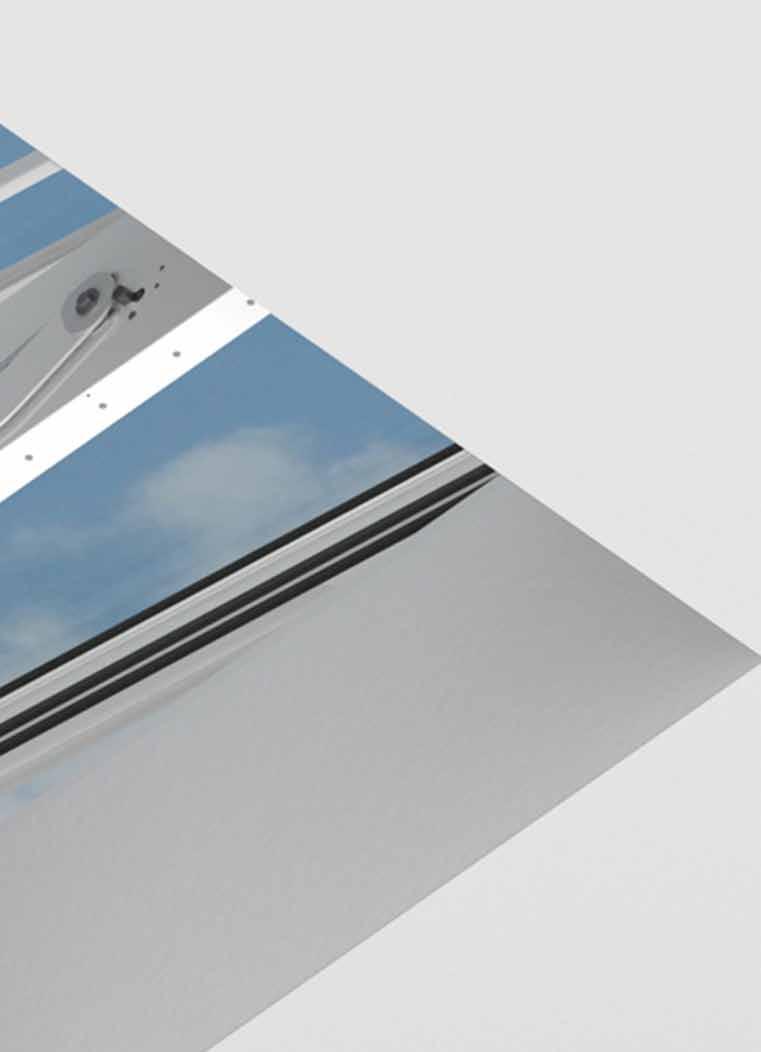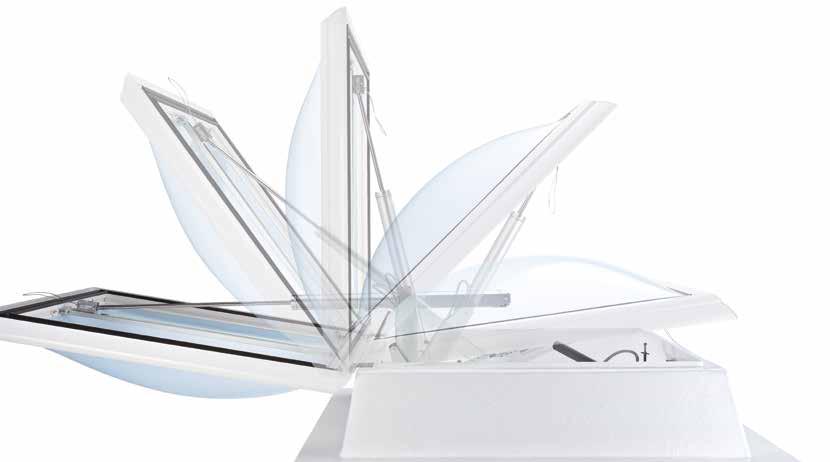 Questo EFC ha il sistema di battenti ideali per assicurare la funzione di evacuazione di fumo e calore nei lucernari in vetro di LAMILUX. Possibilità di posa con inclinazioni da 0° a 90°.