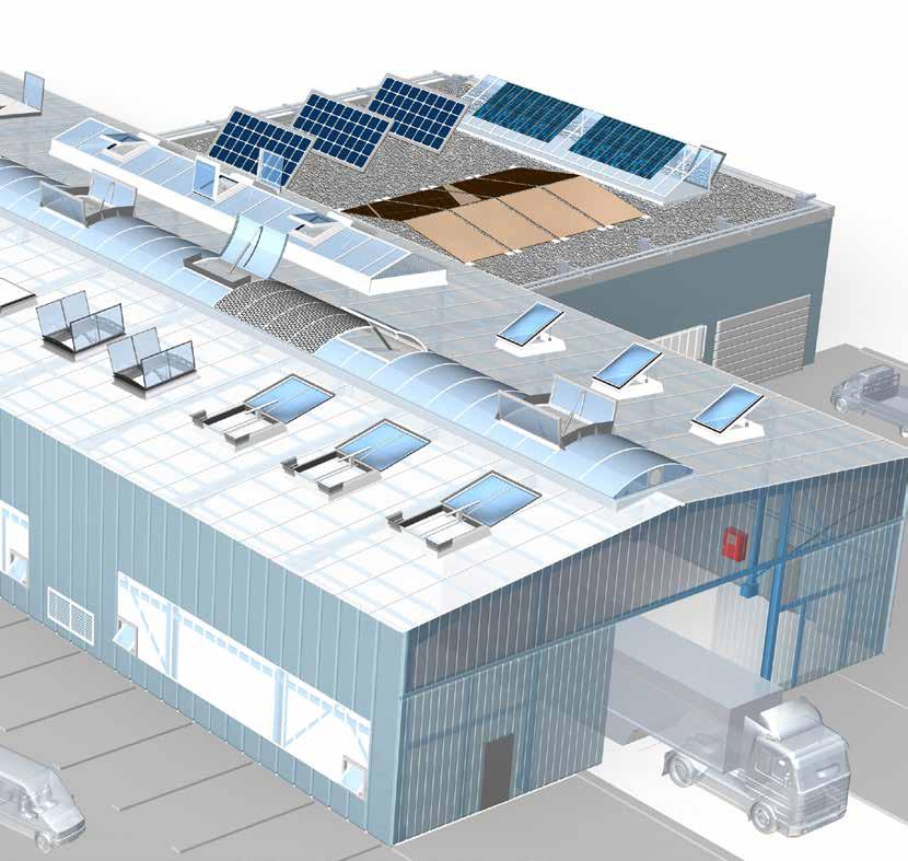 Gli evacuatori di fumo e calore LAMILUX soddisfano sia il requisito di una rapida ed efficiente evacuazione dei fumi e del calore richiesta dai Vigili del Fuoco che l’esigenza del committente di poter contare su una soluzione economicamente vantaggiosa.