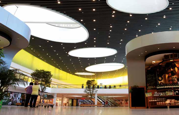 • Anche se l’alluminio di rivestimento del lato interno del basamento è altamente riflettente, il principio brevettato di questo sistema evita fenomeni di abbagliamento all’interno del locale.