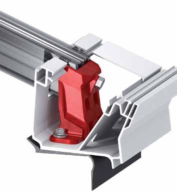L’impiego di componenti innovativi, come ad esempio il sistema di fissaggio bionico dinamico (BDS), assicura la resistenza del lucernario continuo ai carichi di vento e di neve.
