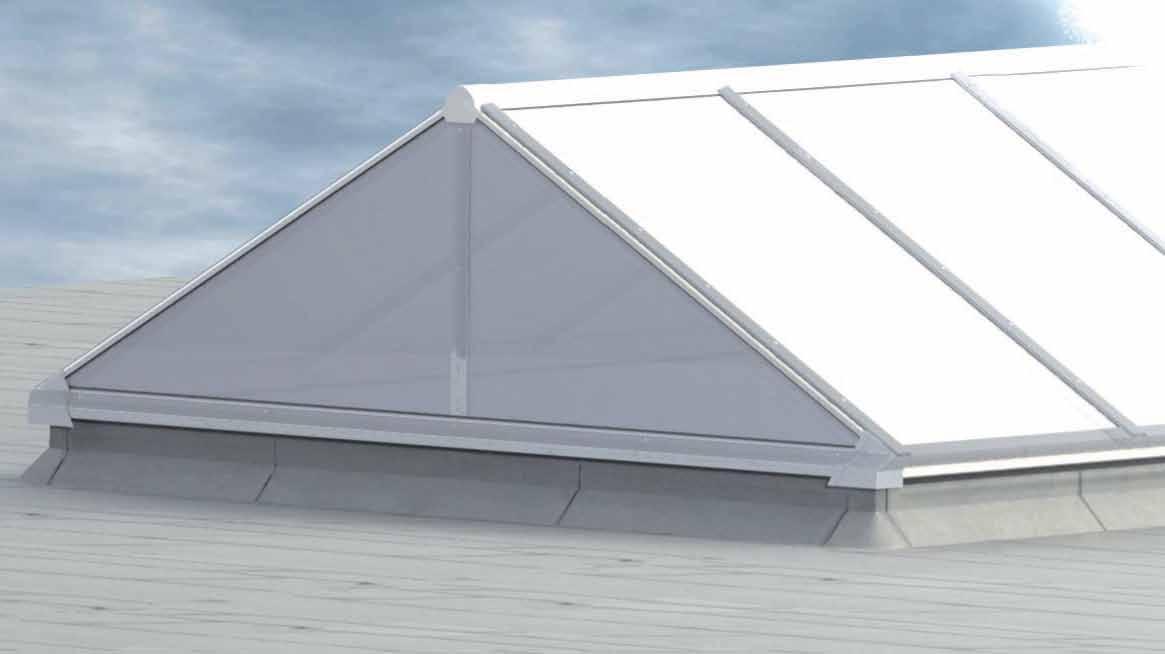Il primo lucernario continuo a doppia falda con vetrata in materiale plastico, con taglio termico di serie